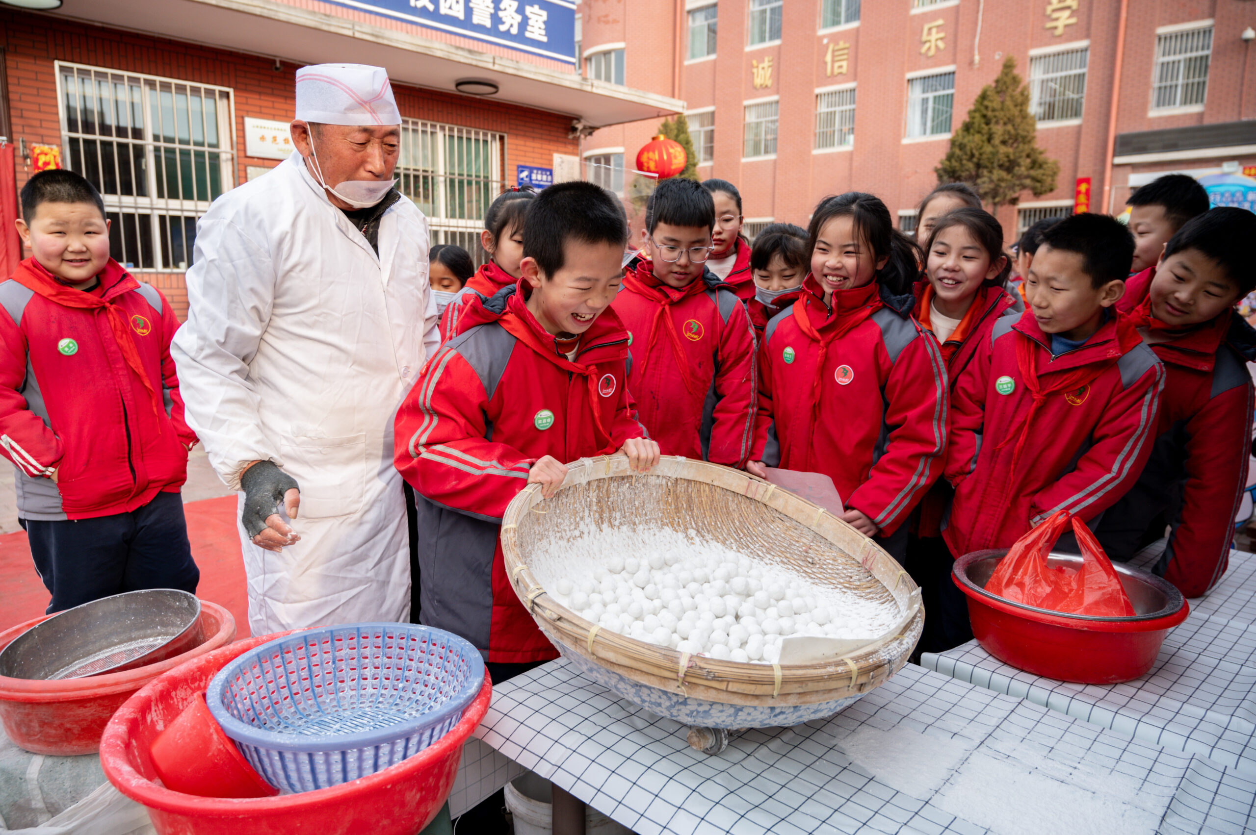 2月26日,学生体验滚元宵。当日是山西省太原市中小学开学日,太原市小店区警民小学邀请民间非遗艺人走进...