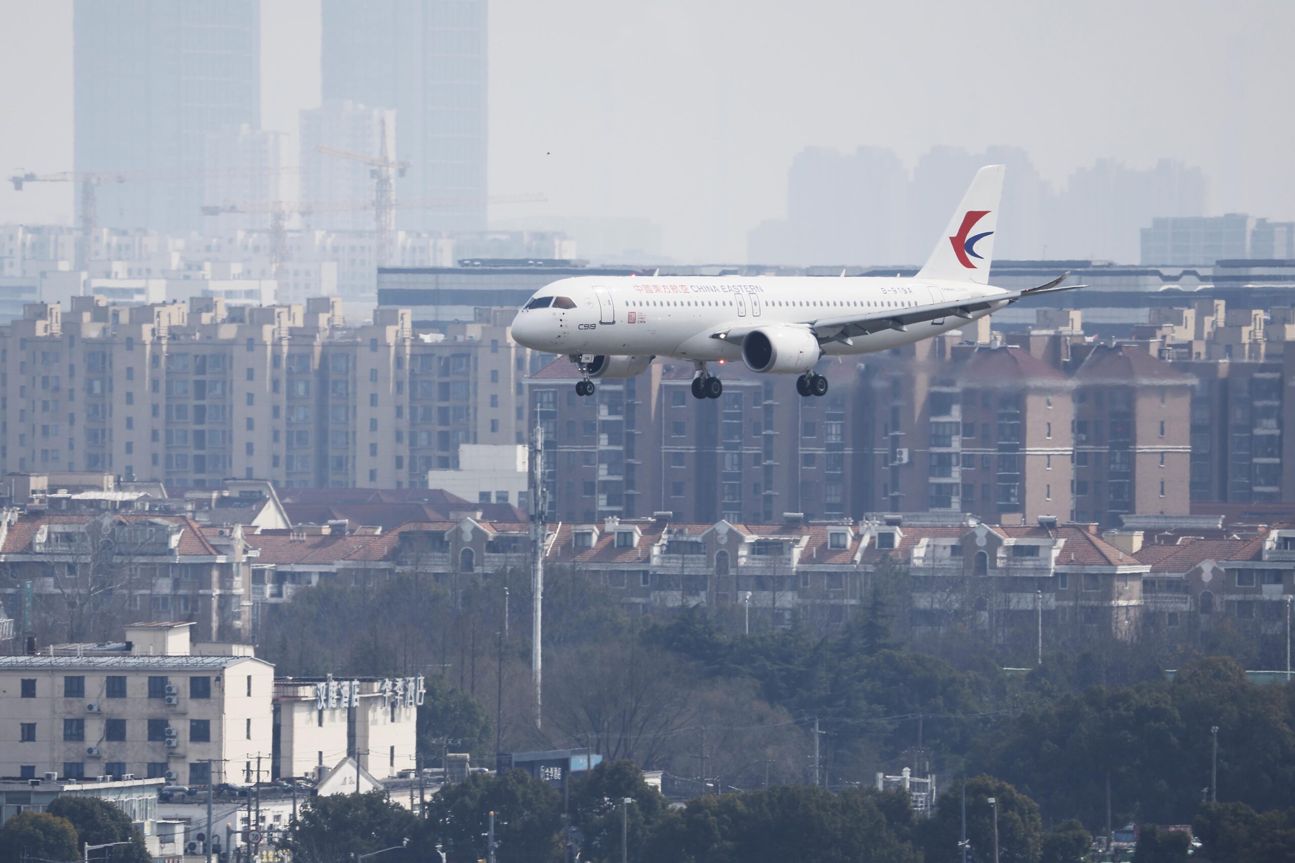 2月26日,在完成新加坡航展的展示后,东航注册号为B-919A的全球首架C919大型客机经过5个小时...