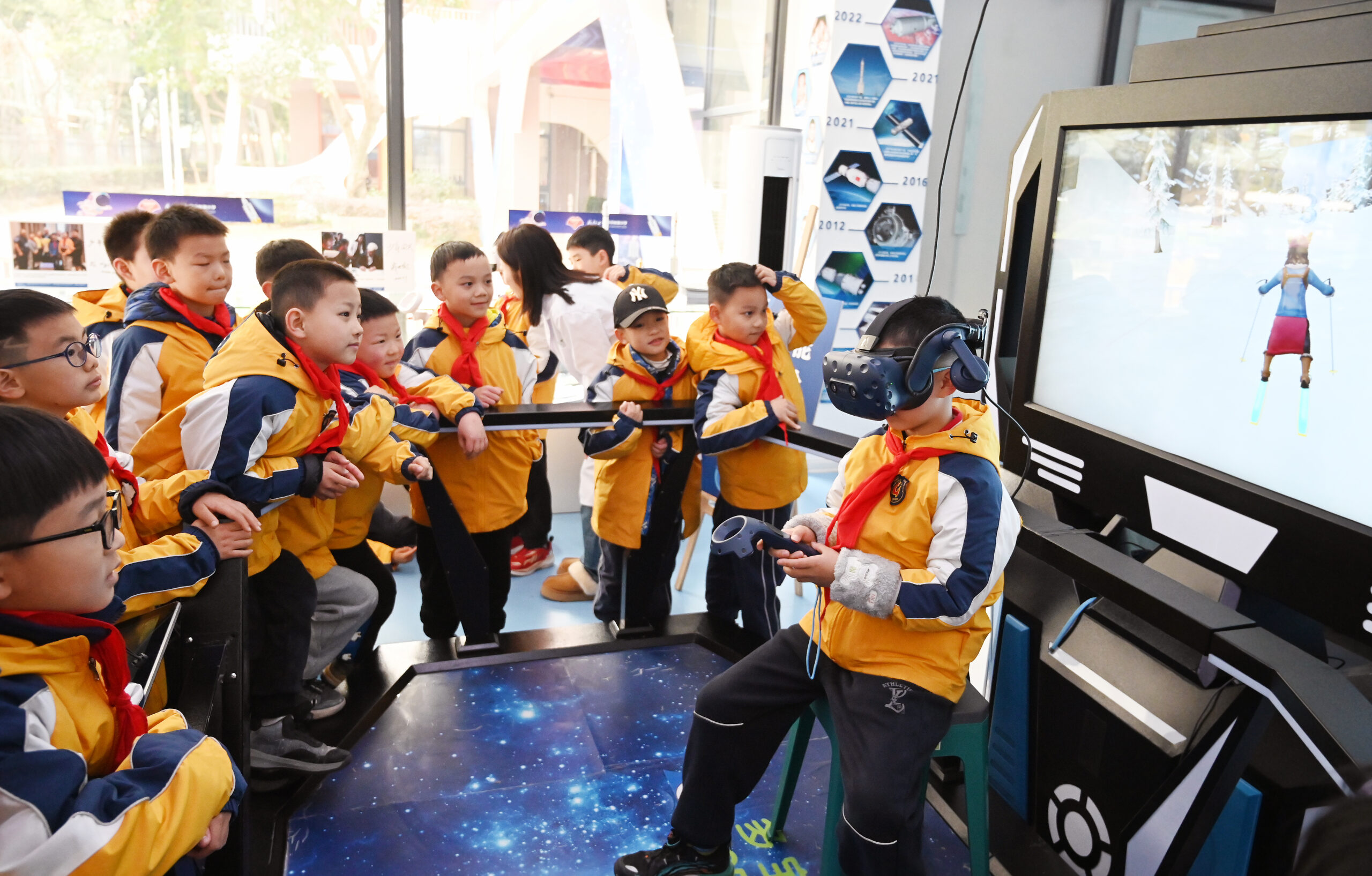 2月26日,四川省成都市中小学幼儿园春季学期正式开学,成都七中初中附属小学学生在学校科技馆体验VR视...