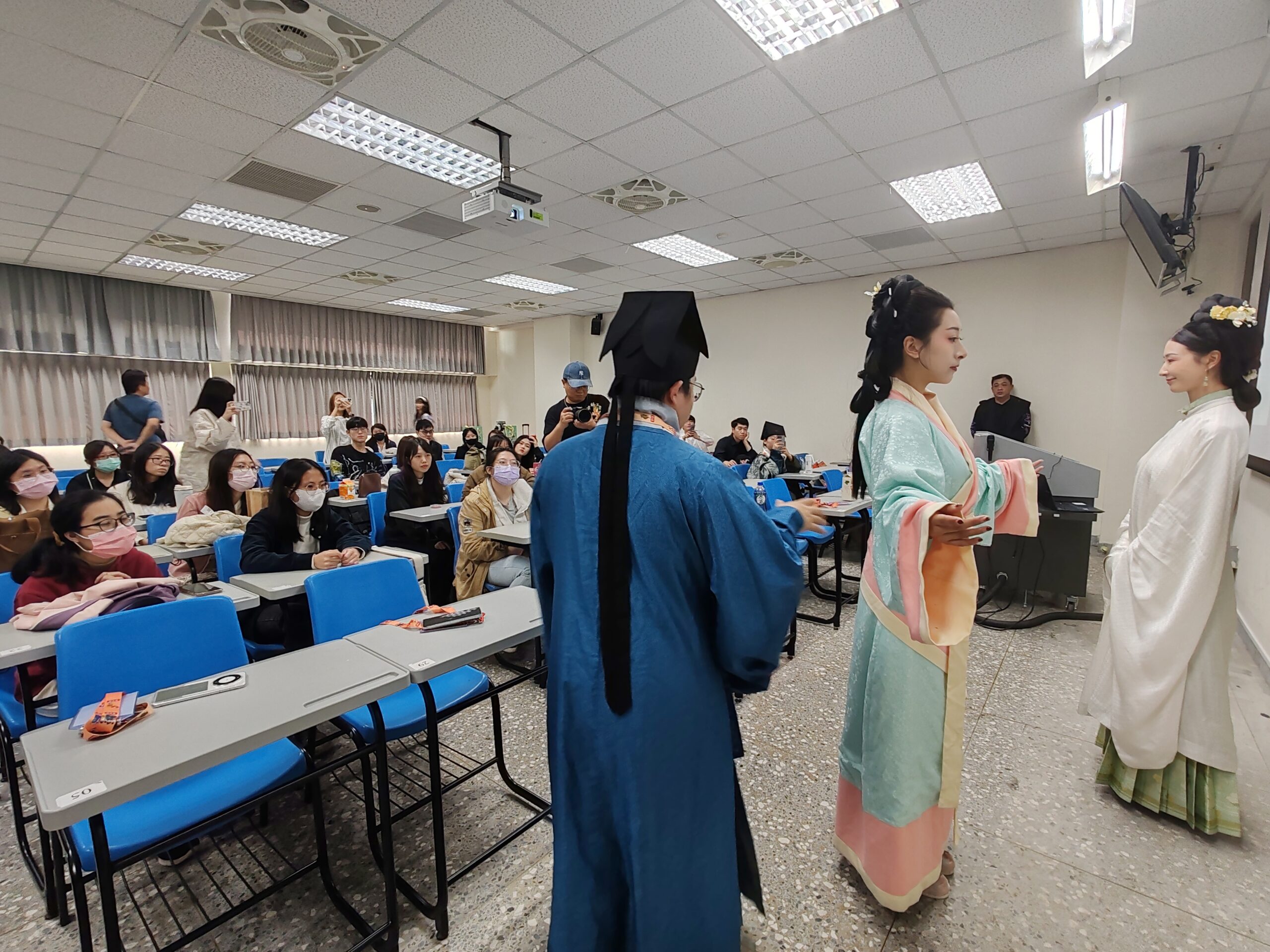 2月19日,两岸汉服爱好者在台湾铭传大学桃园校区线下交流,大陆汉服研究院专家及汉服“推荐官”身着不同...
