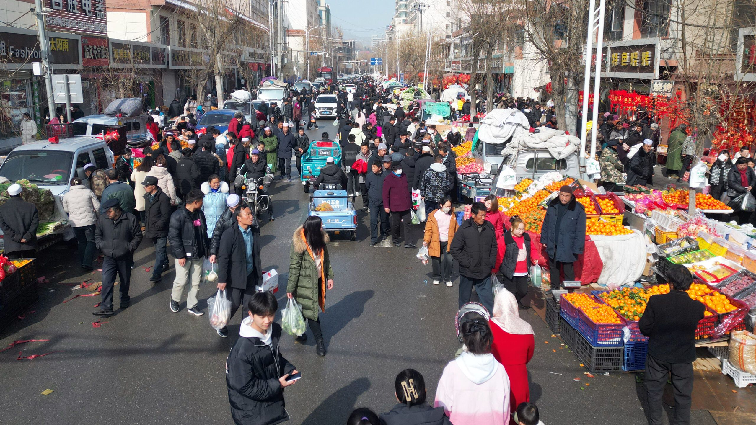 2月8日,甘肃省临夏州积石山县,民众逛集市、买年货、做美食,迎接中国农历新年的到来。图为民众在积石山...