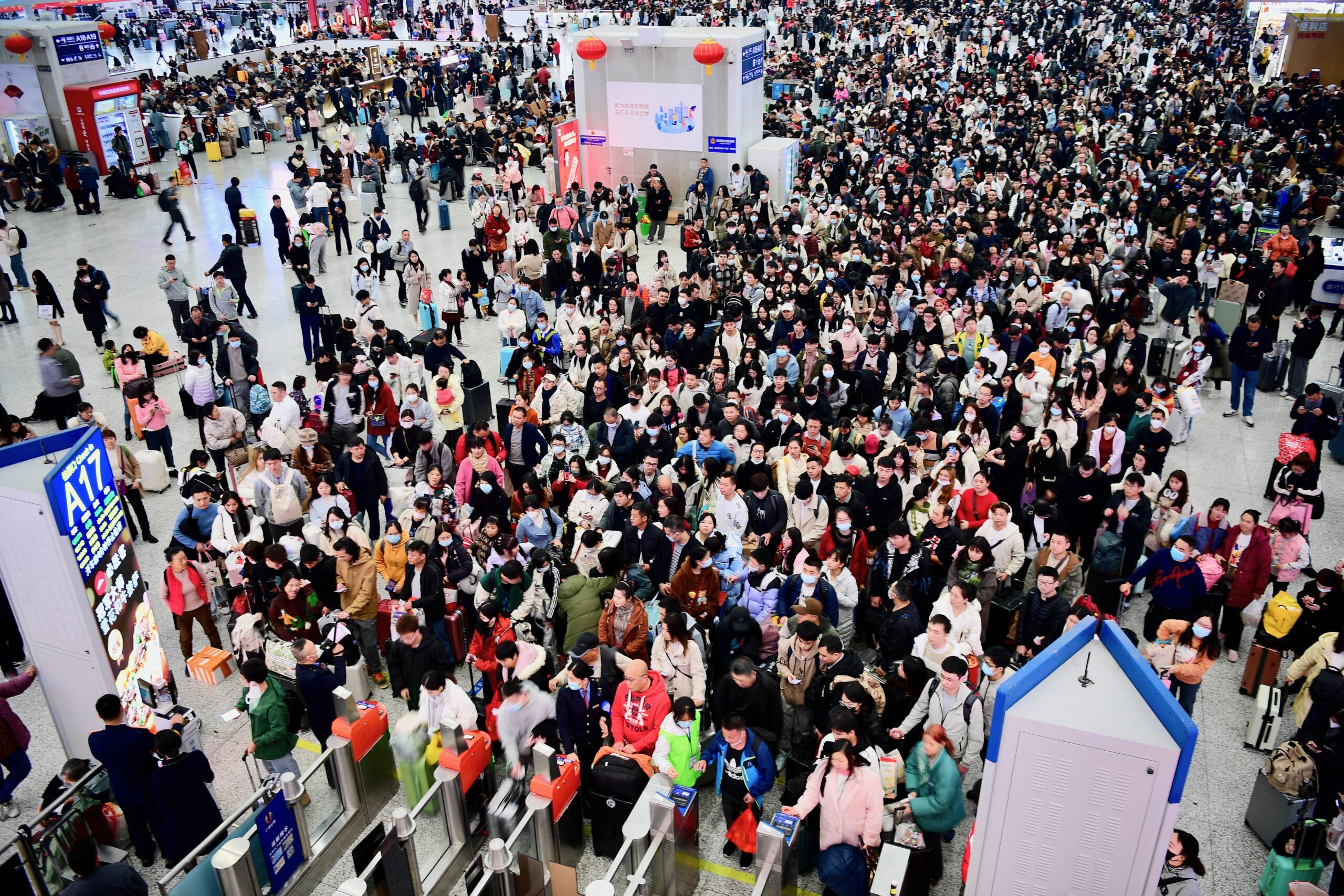 2月7日,广州铁路集团深圳北站客流连续在高位运行,深圳北站迎来春运返乡旅客高峰潮。图为深圳北站候车大...