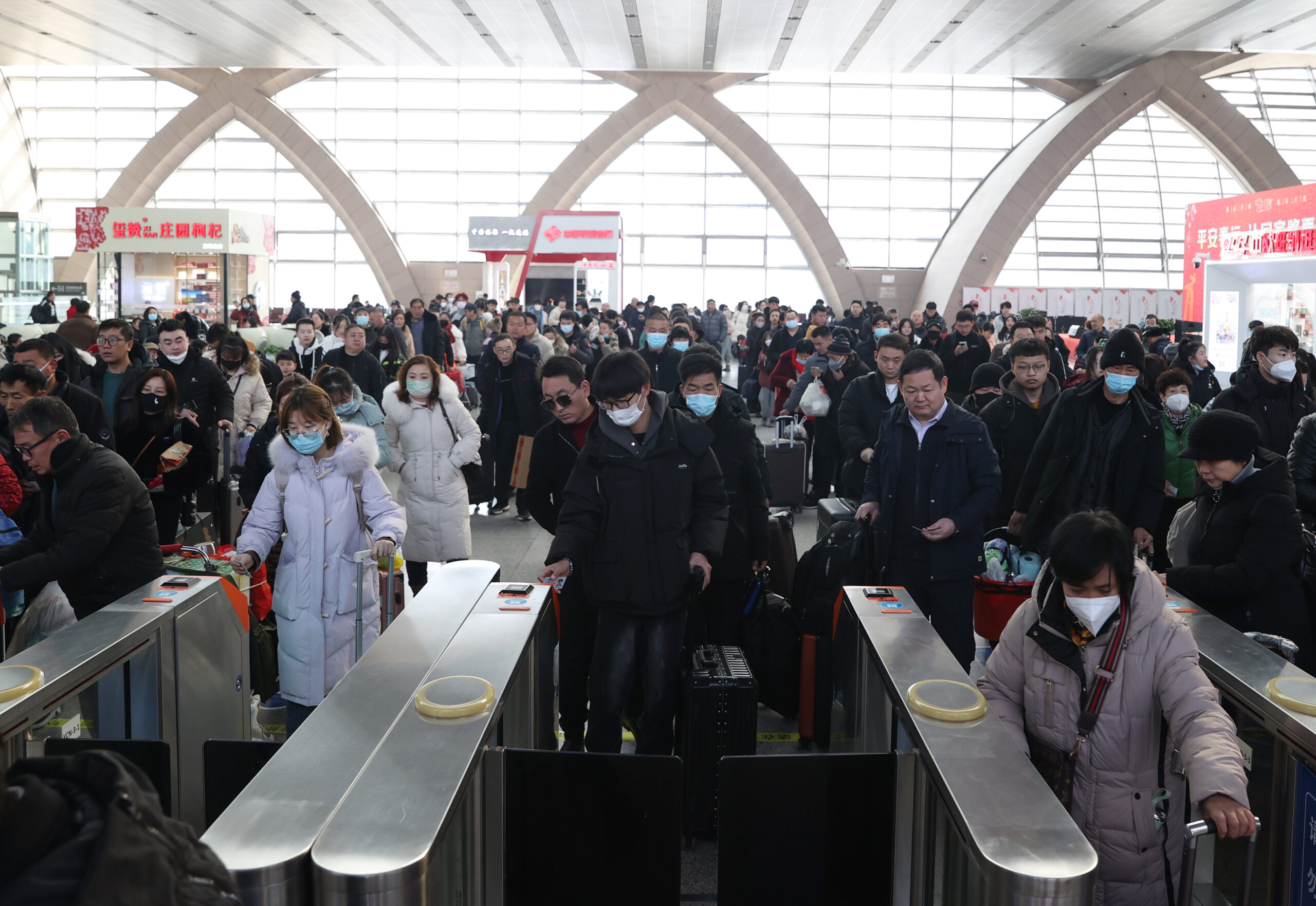 2月6日,新疆乌鲁木齐市人民公园,市民从“灯笼长廊”下走过。农历新年来临,该公园用中国结、灯笼墙搭建...