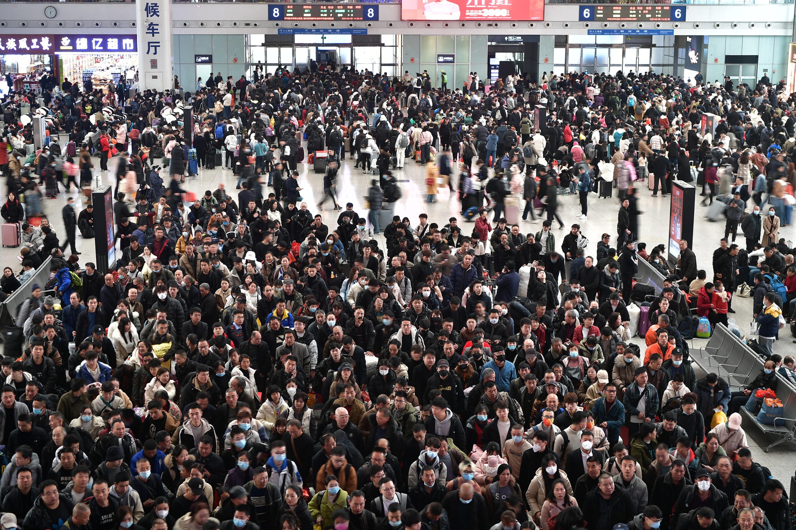 2月5日,福建福州,旅客在福州火车站候车厅候车。随着中国农历春节的临近,福州火车站客流持续攀升。 未...