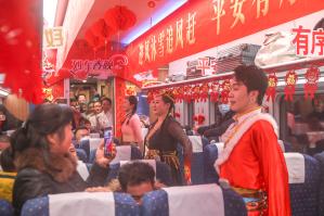 2月5日,腊月二十六,由江西南昌开往北京的D136列车上,上演了一场热闹的“列车春晚”,铁路工作人员...