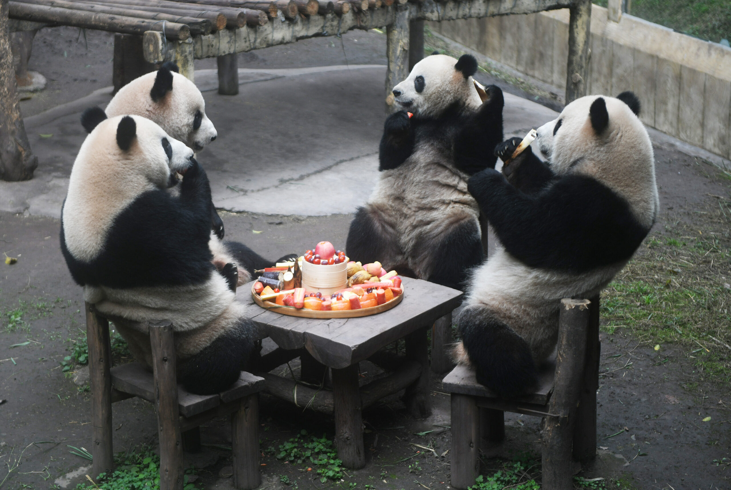 2月2日,在中国农历龙年春节即将来临之际,重庆动物园为大熊猫准备了迎新春特色活动。图为活动现场,大熊...