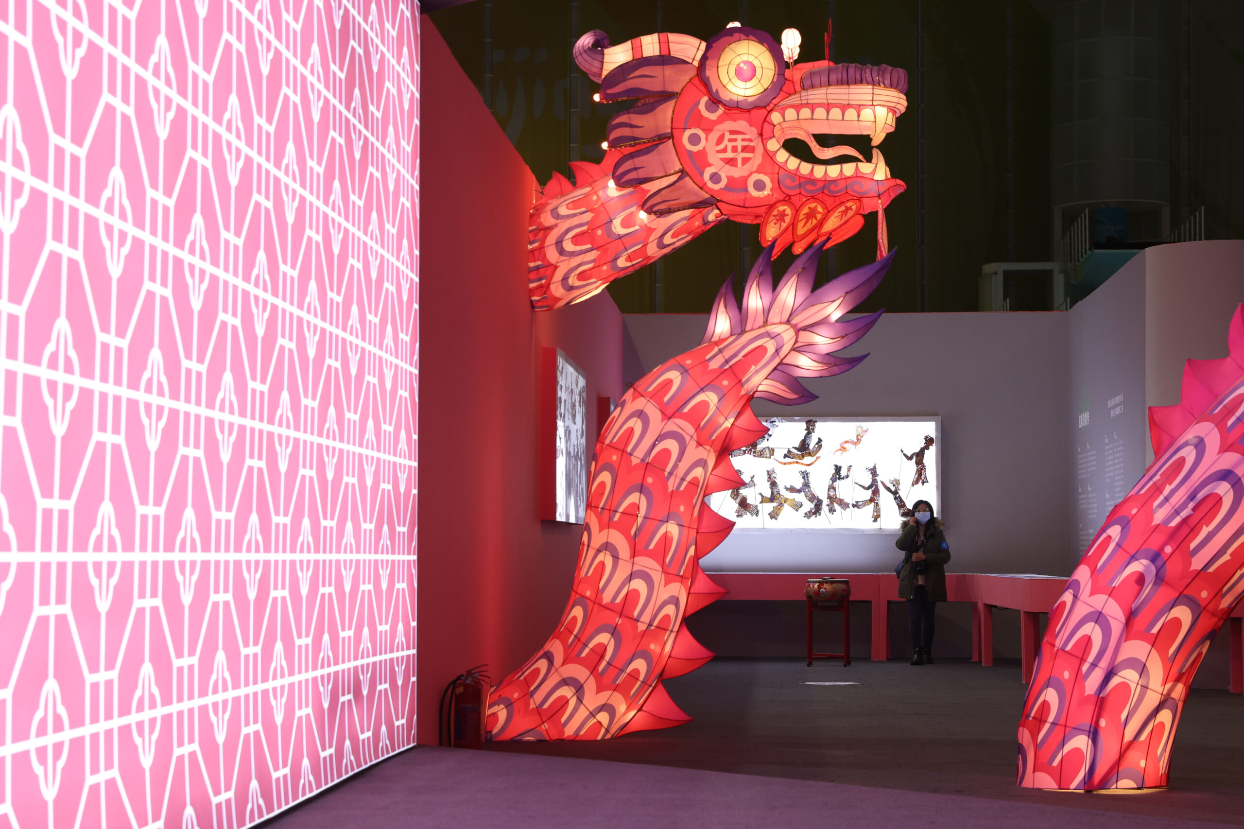 1月31日,在位于北京的国家游泳中心“水立方”内,游客参观“喜乐过龙年”展览。为迎接龙年春节的到来,...