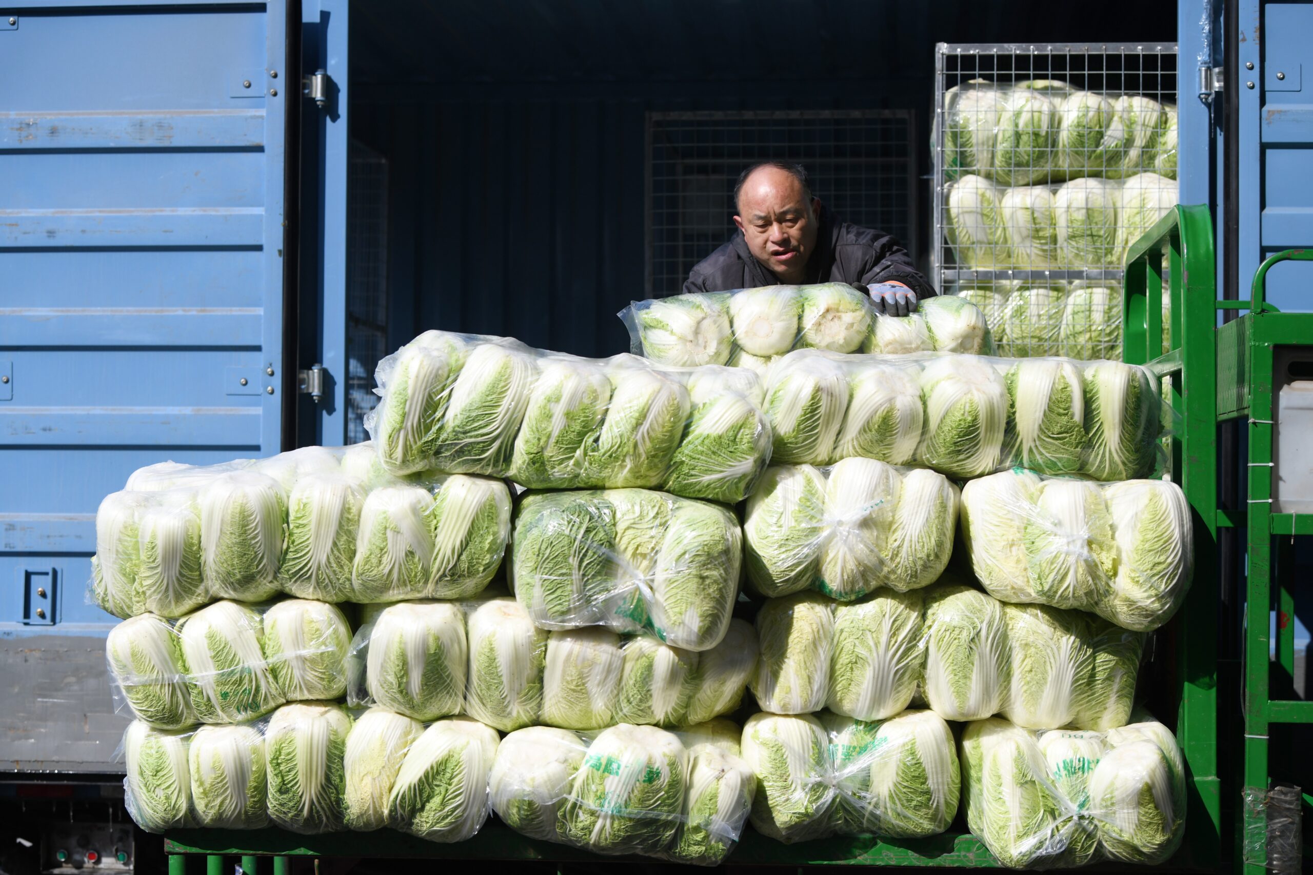 1月23日,工作人员在长沙红星全球农批中心搬运蔬菜。近日,长沙遭遇持续低温寒潮天气,当地各部门全力做...