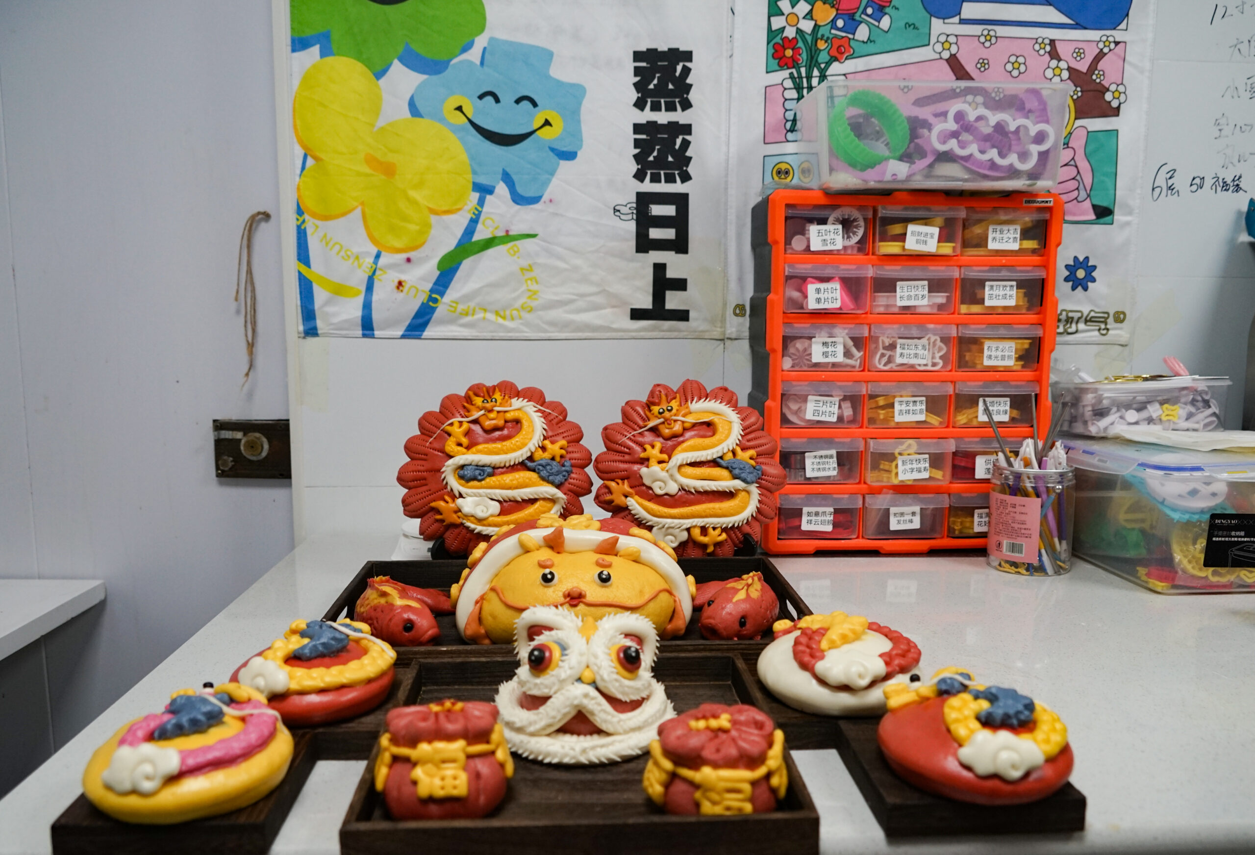 1月15日,张恒制作的中国农历龙年花馍。中国农历龙年临近,在青海省西宁市一中式面点铺内,“95后”小...