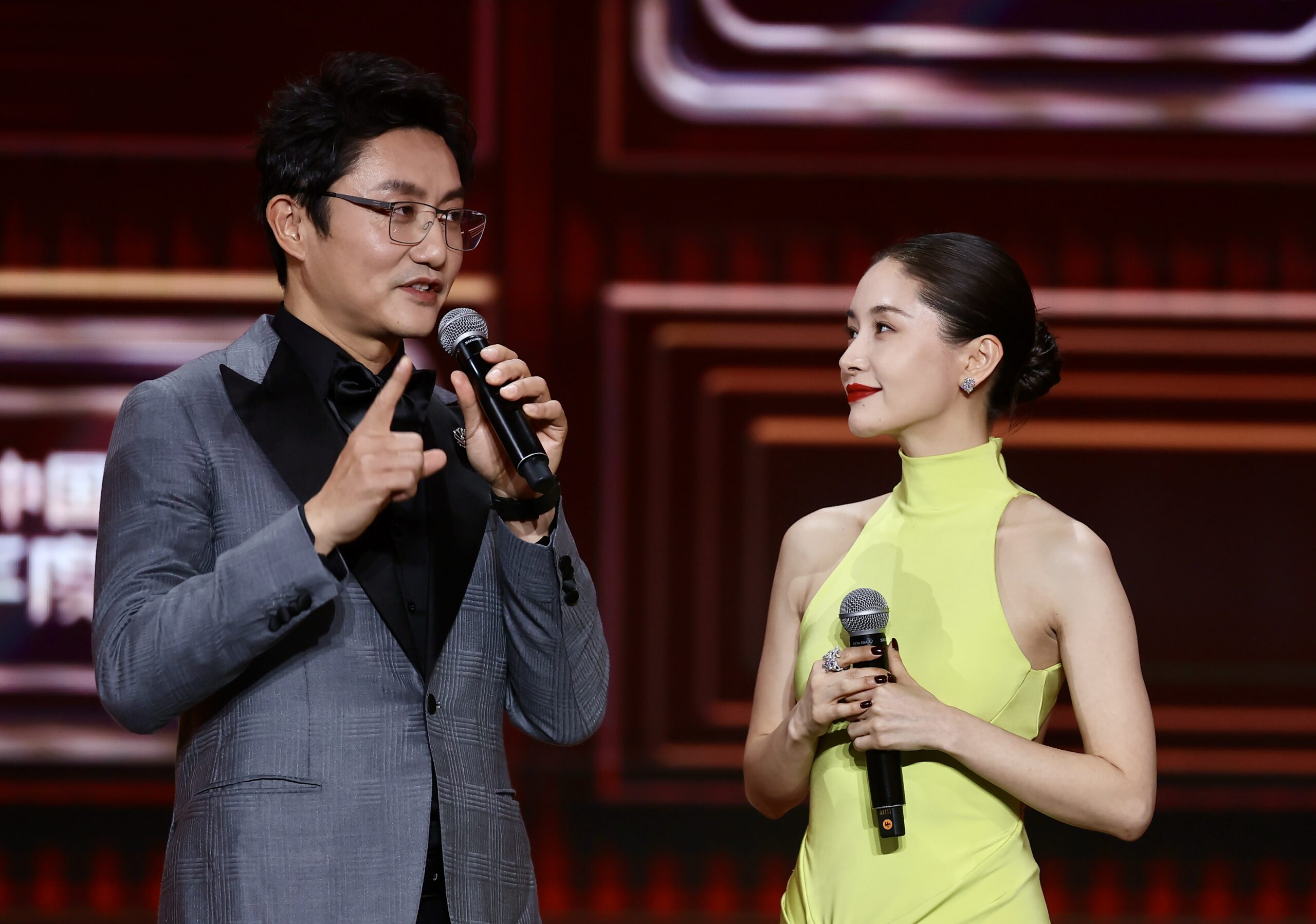 1月12日,《三体》剧组主创王子文(右)和涂松岩在北京举行的第二届中国电视剧年度盛典“盛典之路”红毯...