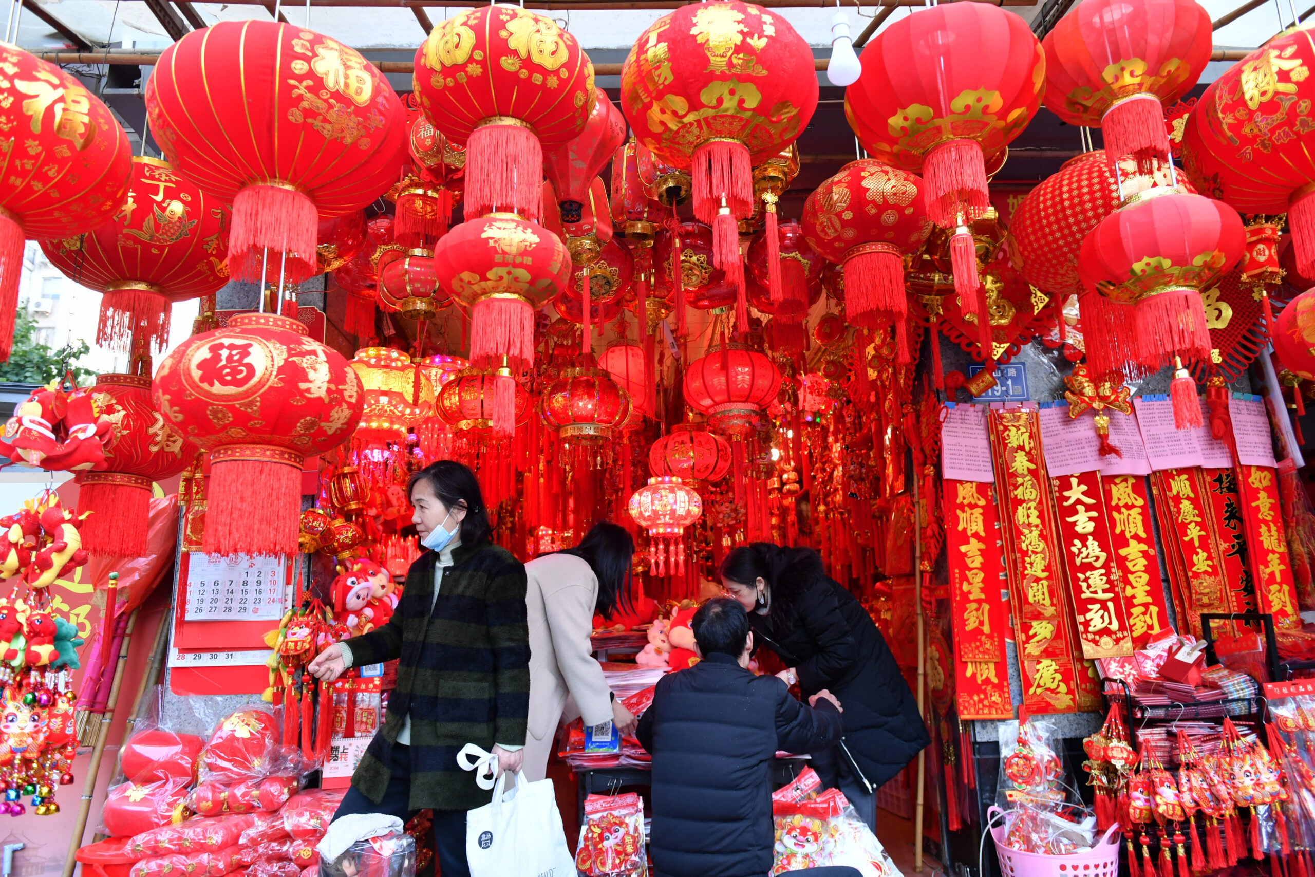 1月11日,福建福州,市民在商铺选购新春饰品。春节临近,福州市民忙着选购春联、中国结、红灯笼等年货。...