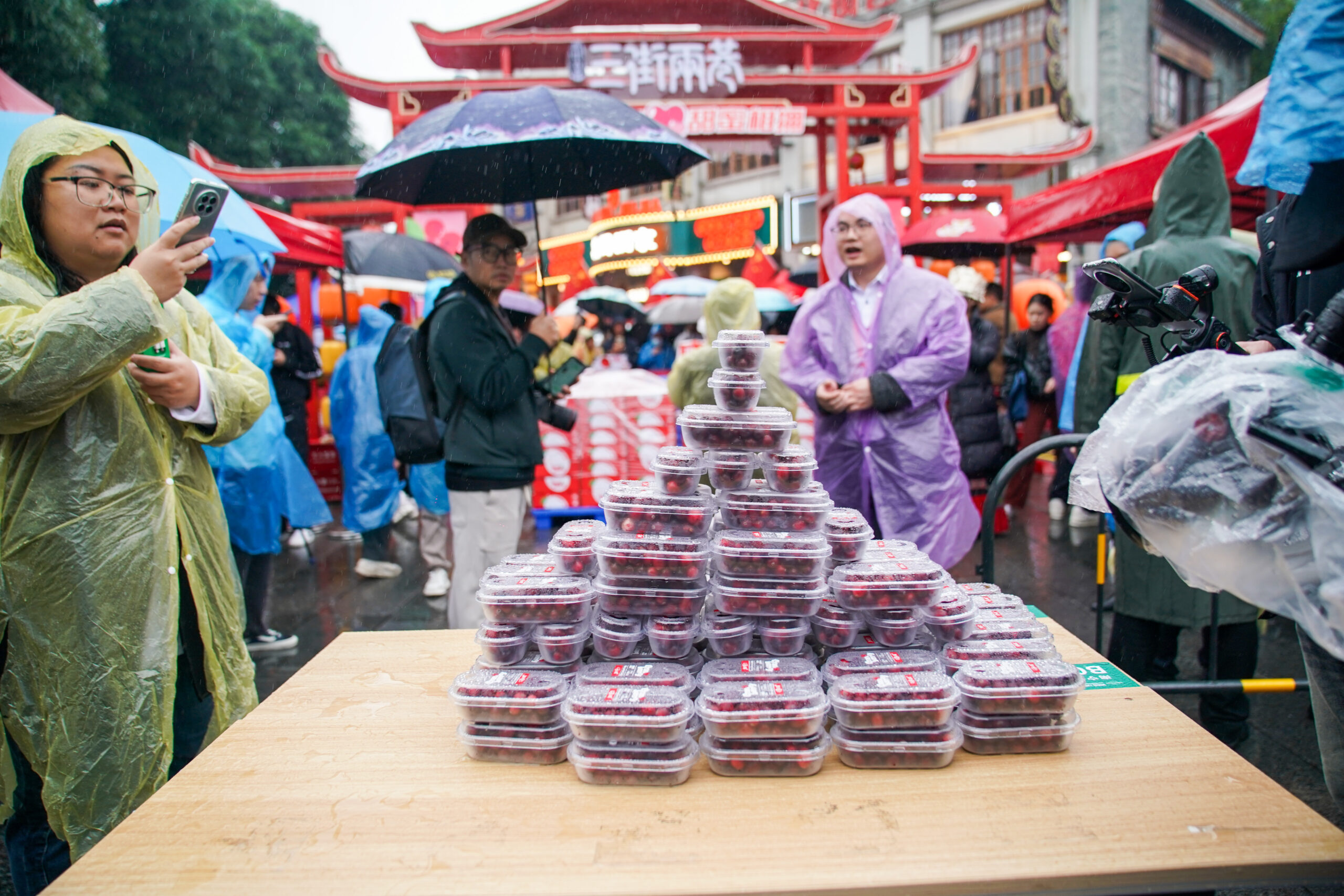 1月11日,广西南宁,等待发放的新鲜蔓越莓。黑龙江省佳木斯抚远市赠送的首批蔓越莓当日抵达南宁,在老南...