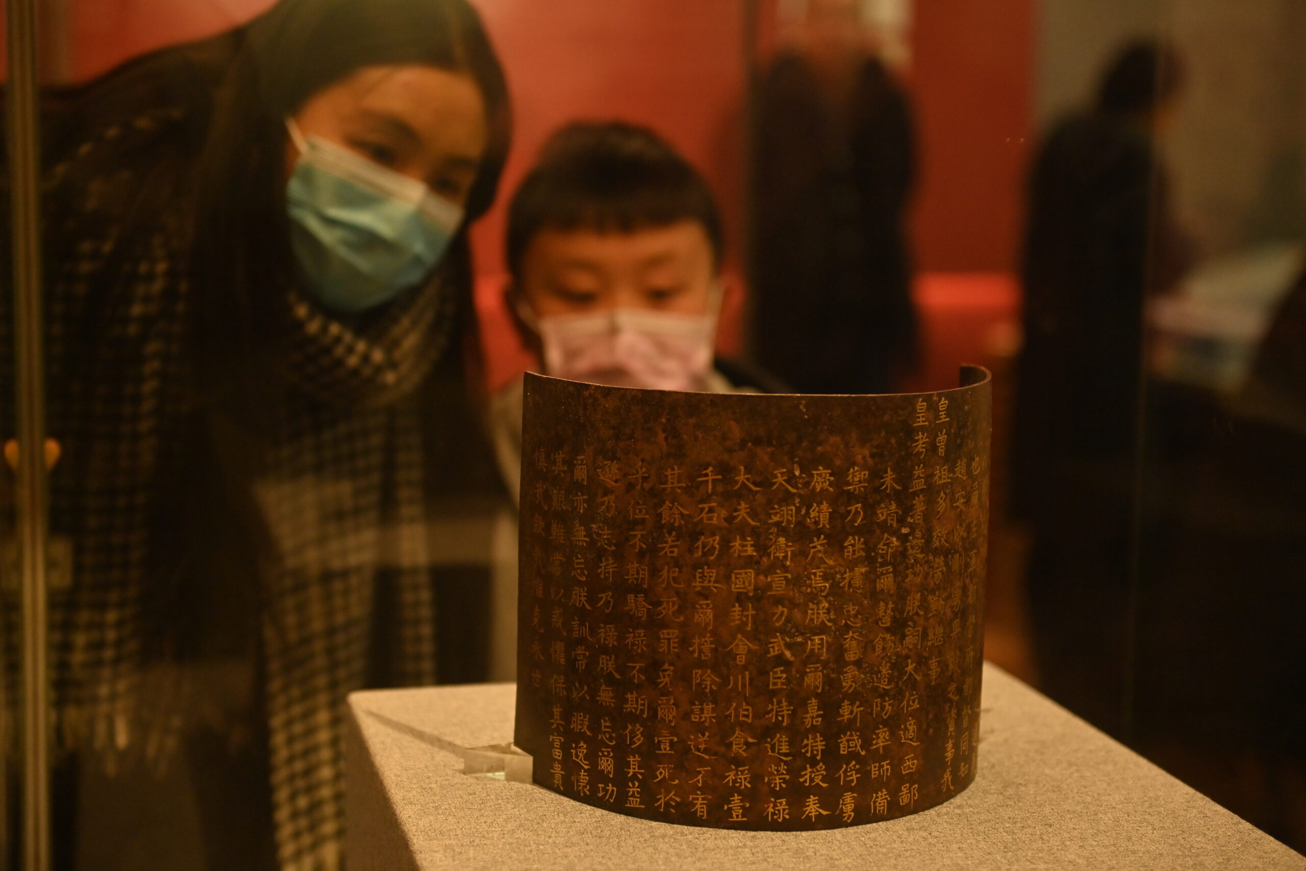 1月9日,甘肃省兰州市,游客参观展出的“会川伯赵安”金书铁券。近日,甘肃省博物馆推出“踵事增华——甘...