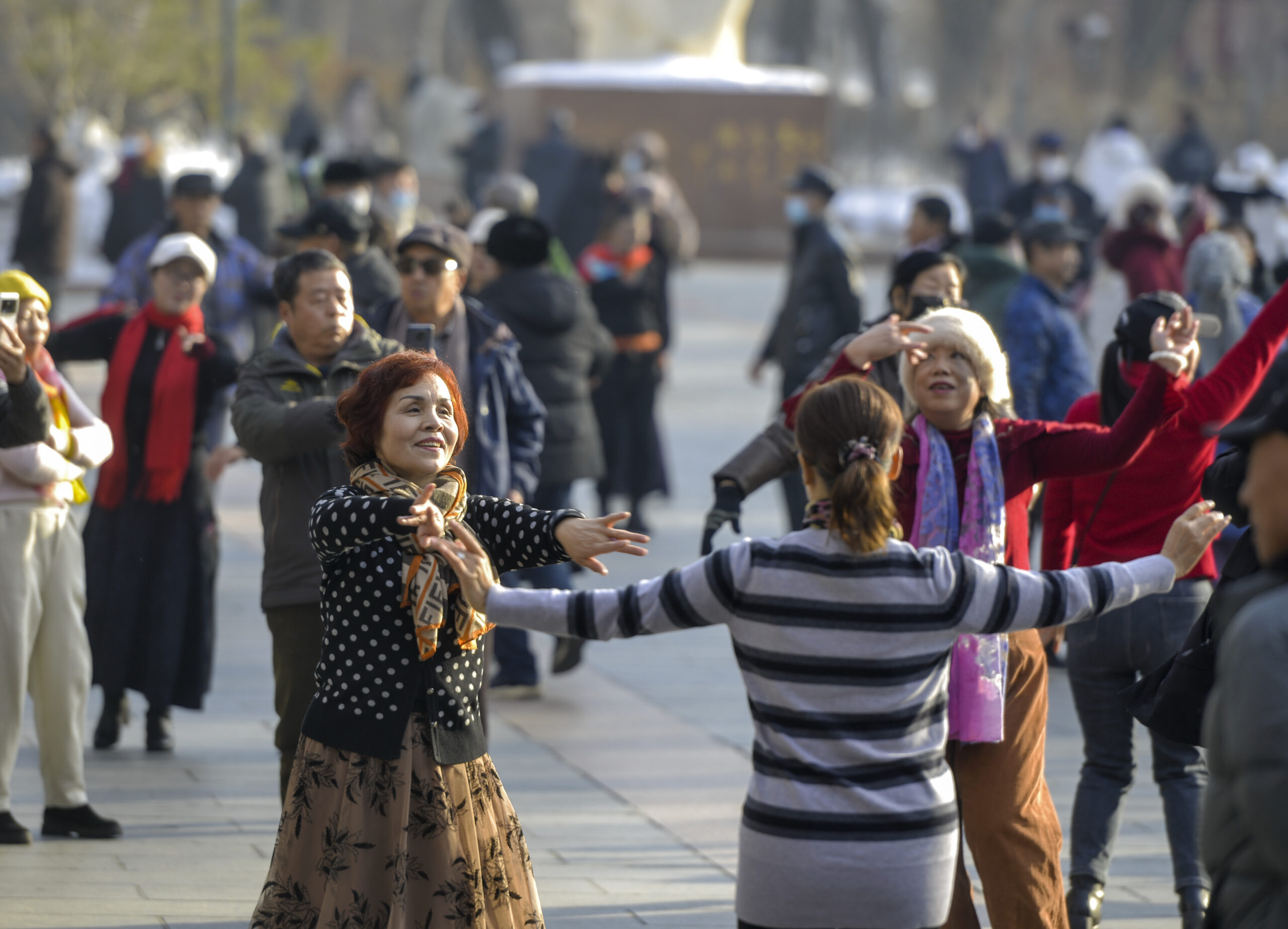 1月9日,新疆乌鲁木齐市人民公园,市民聚在一起跳舞。当天是“三九”第一天,据中央气象台网站数据显示,...