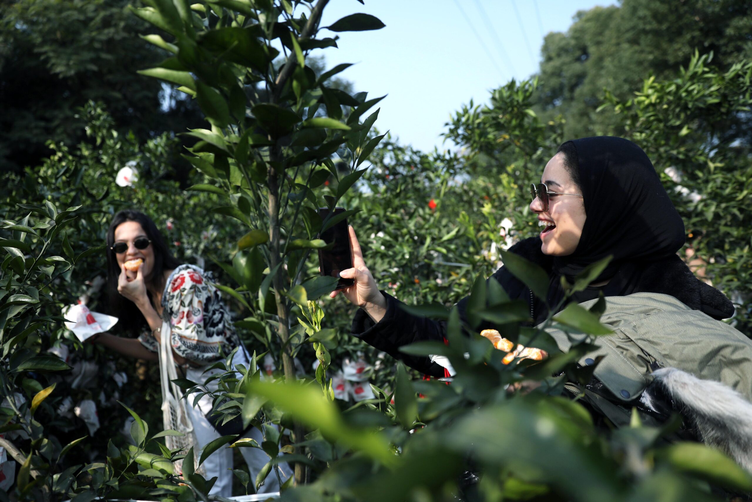 1月9日,四川蒲江,美国哥伦比亚大学学生代表在铁牛村生态丑橘示范园内拍照。当日,由29名美国哥伦比亚...