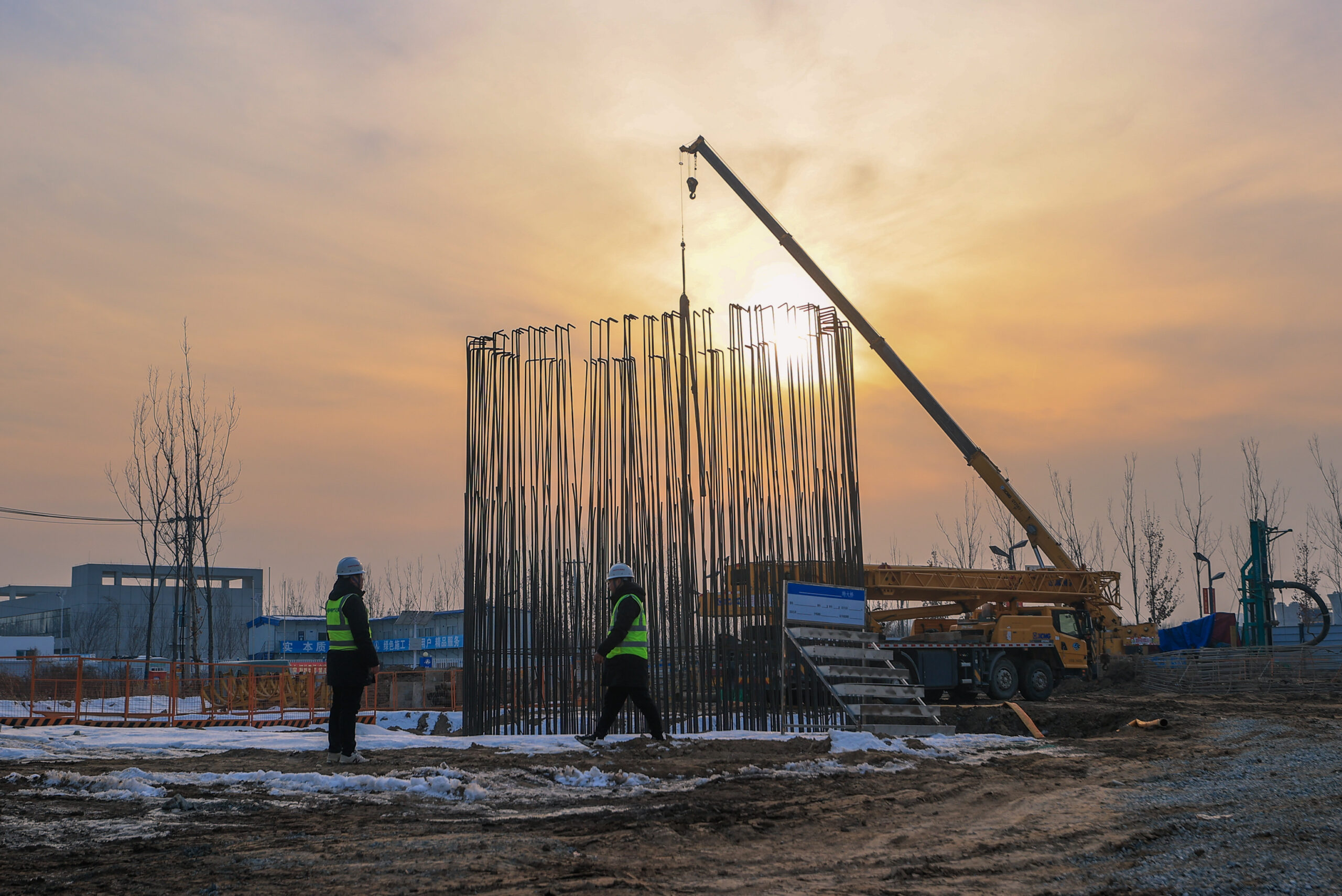 1月8日,河北雄安新区,雄忻高铁控制性工程——新盖房特大桥建设现场正在进行桩基施工。雄忻高铁东起京雄...