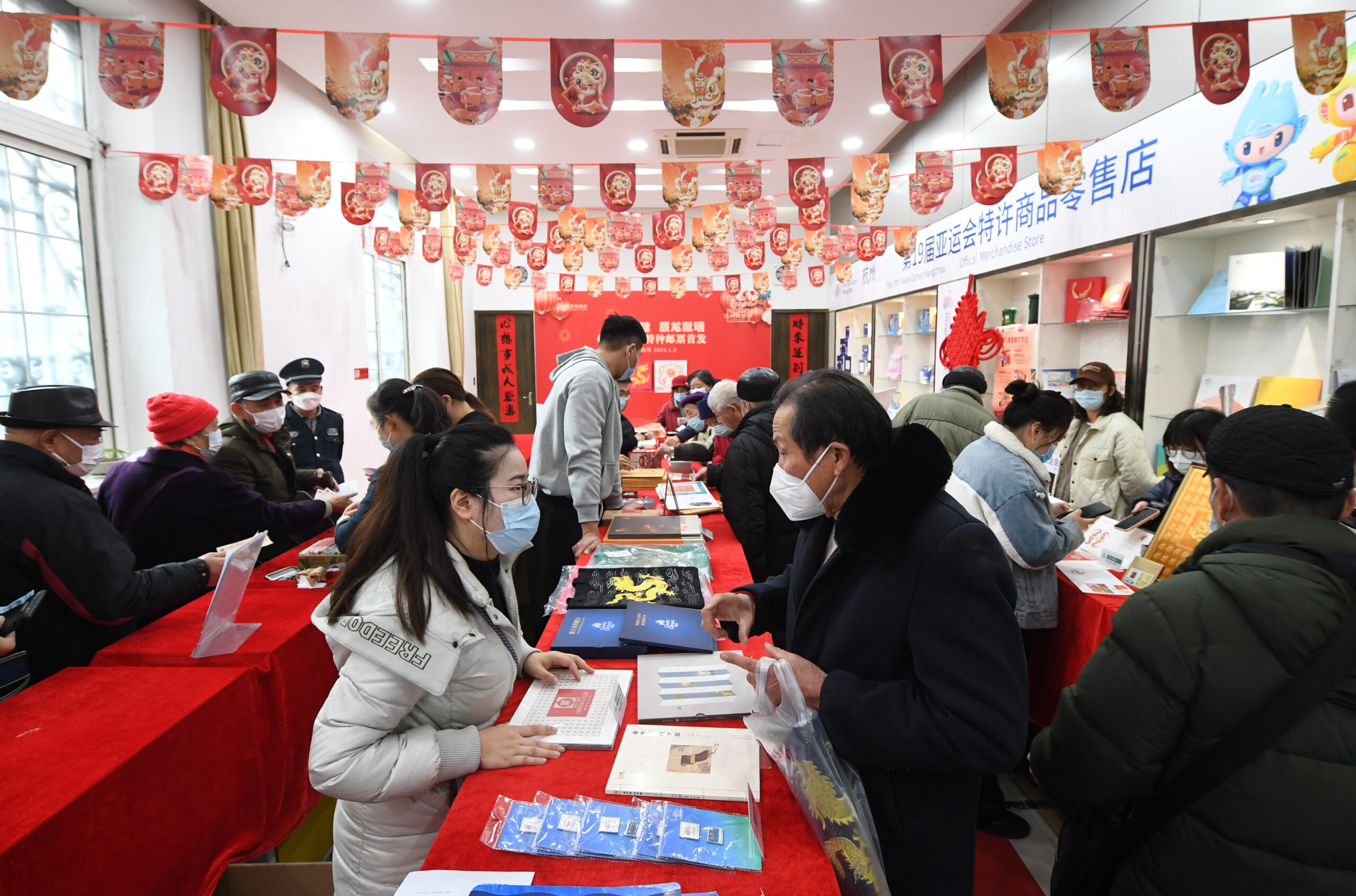 1月5日,民众购买龙年生肖邮票等邮品。当日,中国邮政发行《甲辰年》特种邮票,浙江杭州民众争相购买。该...