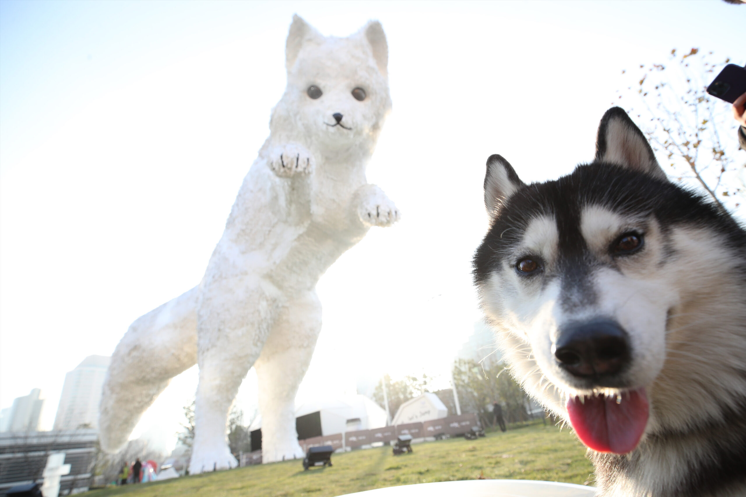 1月5日,上海街头一只巨型“北极狐”艺术装置吸引市民驻足拍照。据悉,这是大黄鸭设计者费罗伦泰因·霍夫...