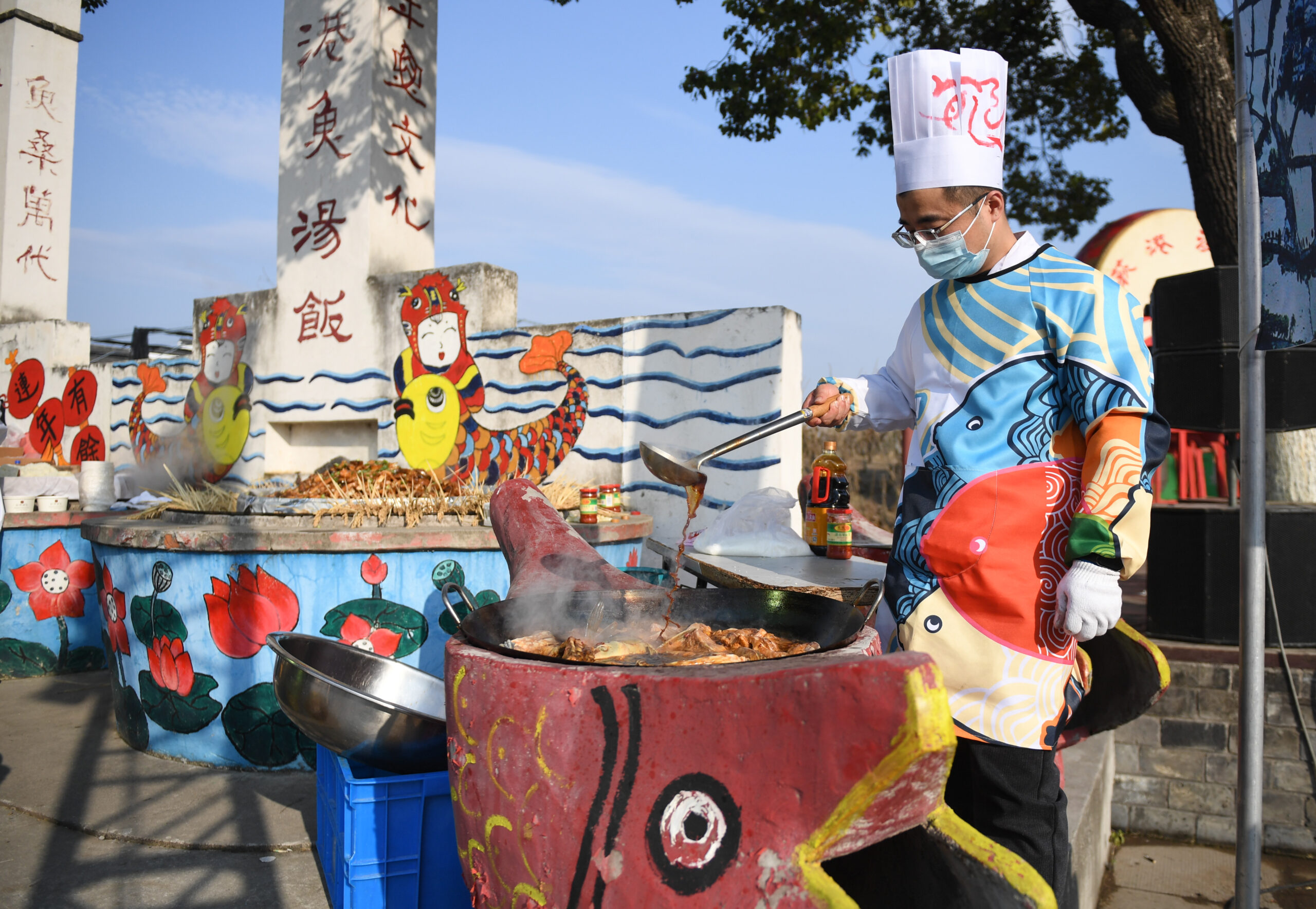1月5日,工作人员烧制鱼汤饭。当日,浙江湖州·南浔第十五届鱼文化节在当地千年古村和孚镇荻港村开幕,吸...