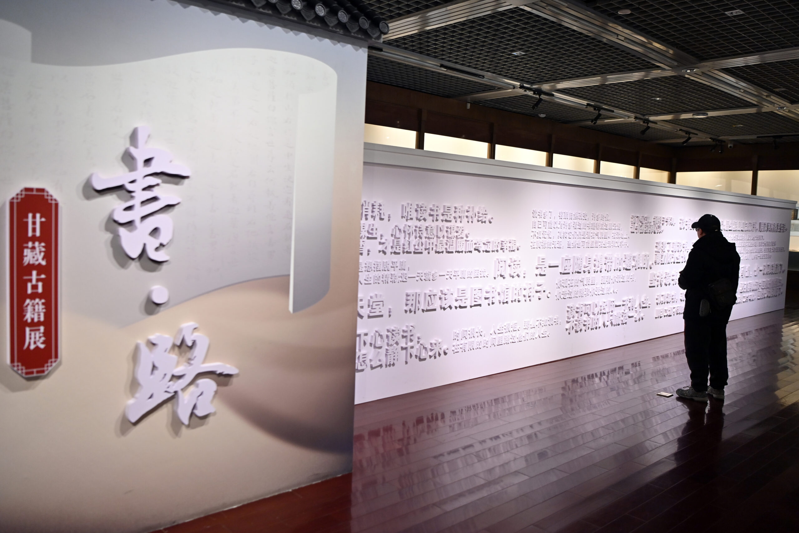1月4日,甘肃兰州,观众参观展览。近日,“书·路——甘藏古籍展”在甘肃省博物馆展出,共展出甘肃省馆藏...