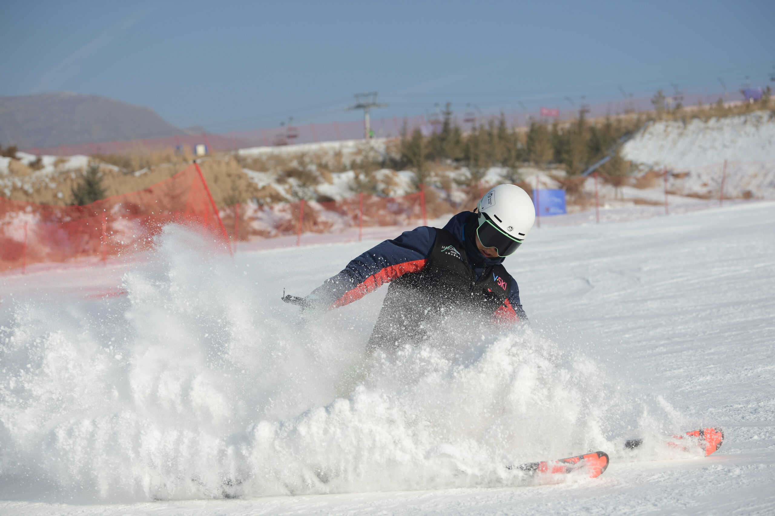 12月28日,呼和浩特市马鬃山滑雪场,滑雪爱好者做技巧动作。近年来,冰雪运动逐渐成为当地民众生活新风...