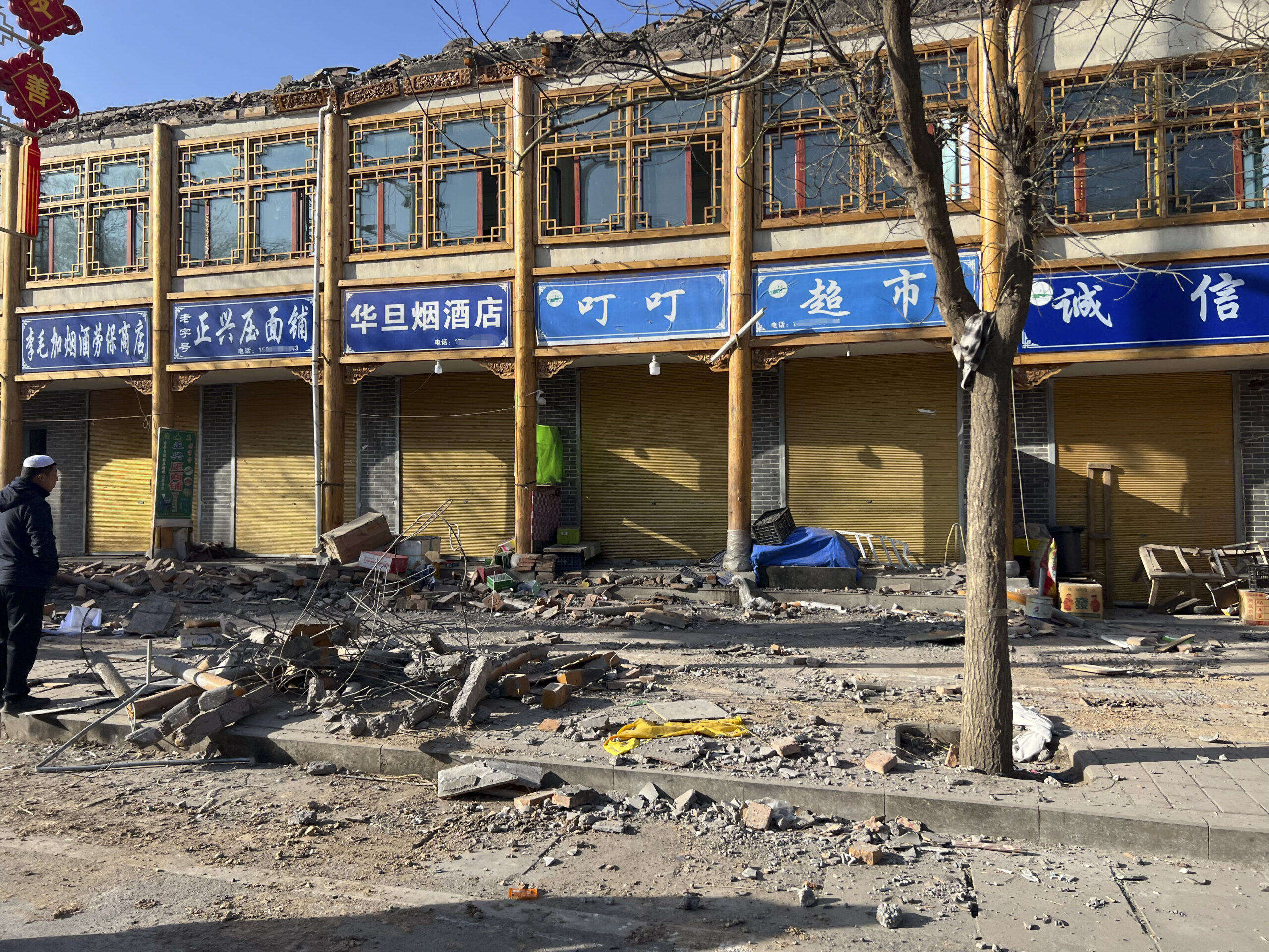12月19日,青海省海东市循化撒拉族自治县白庄镇,沿街铺面受损严重。北京时间12月18日23时59分...