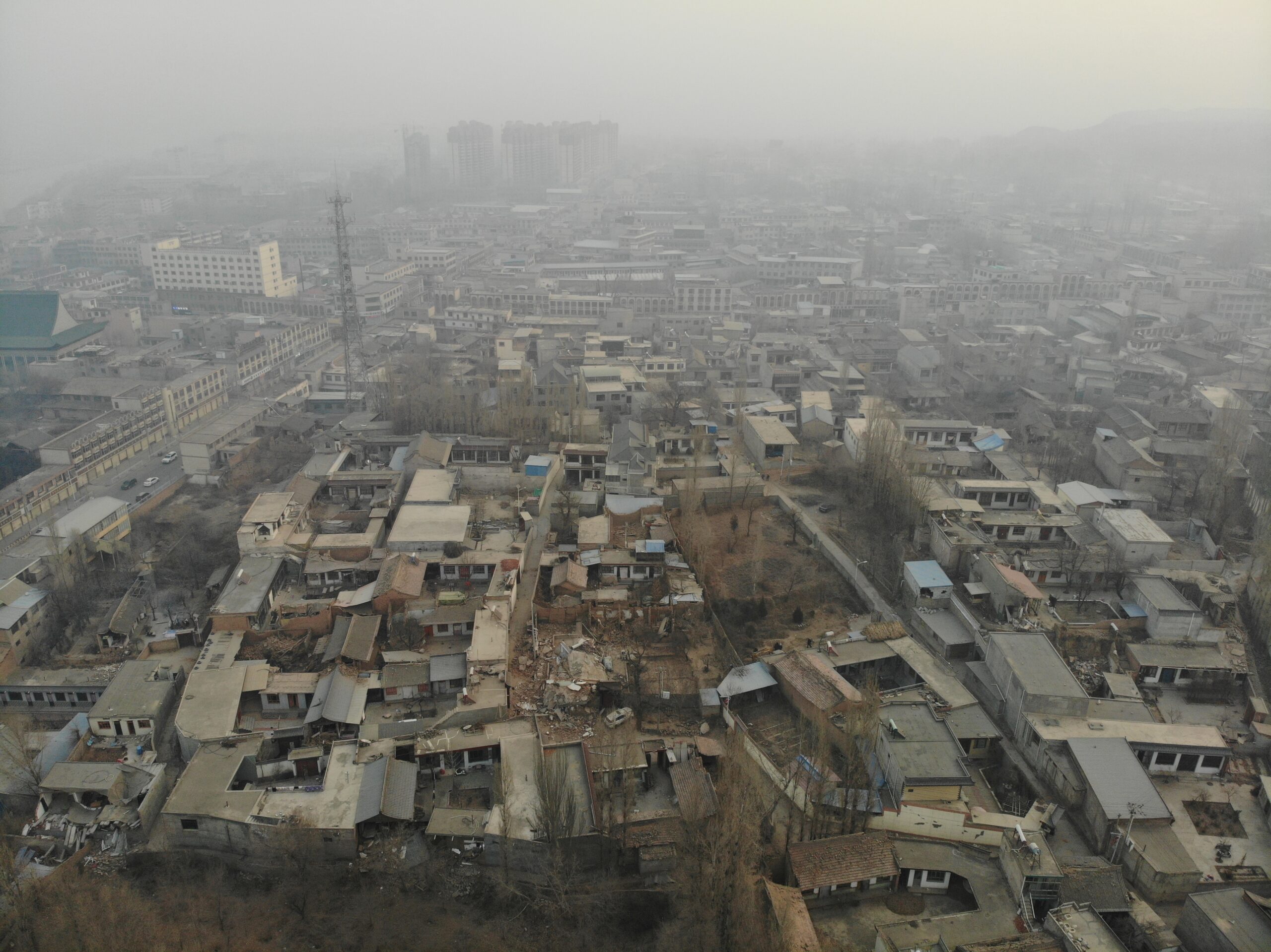 12月19日,航拍甘肃省临夏州积石山县大河家镇受灾现场,部分房屋受损。北京时间12月18日23时59...