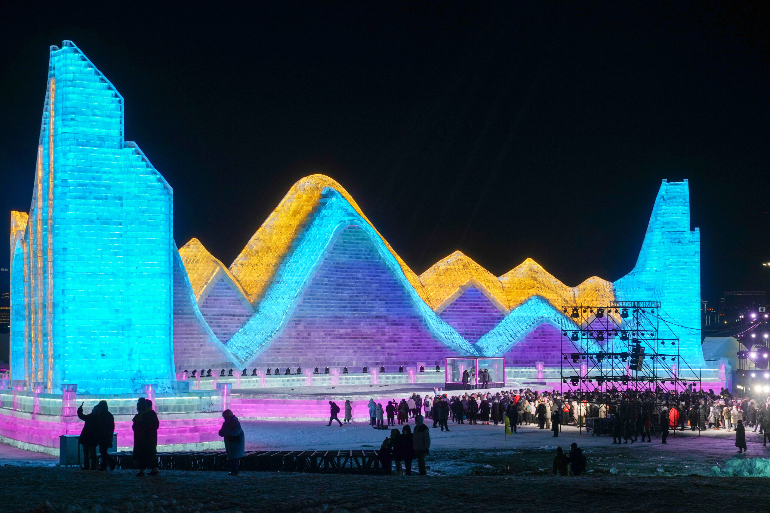 12月17日,黑龙江哈尔滨,第二十五届哈尔滨冰雪大世界试开园。本届哈尔滨冰雪大世界以“龙腾冰雪 逐梦...