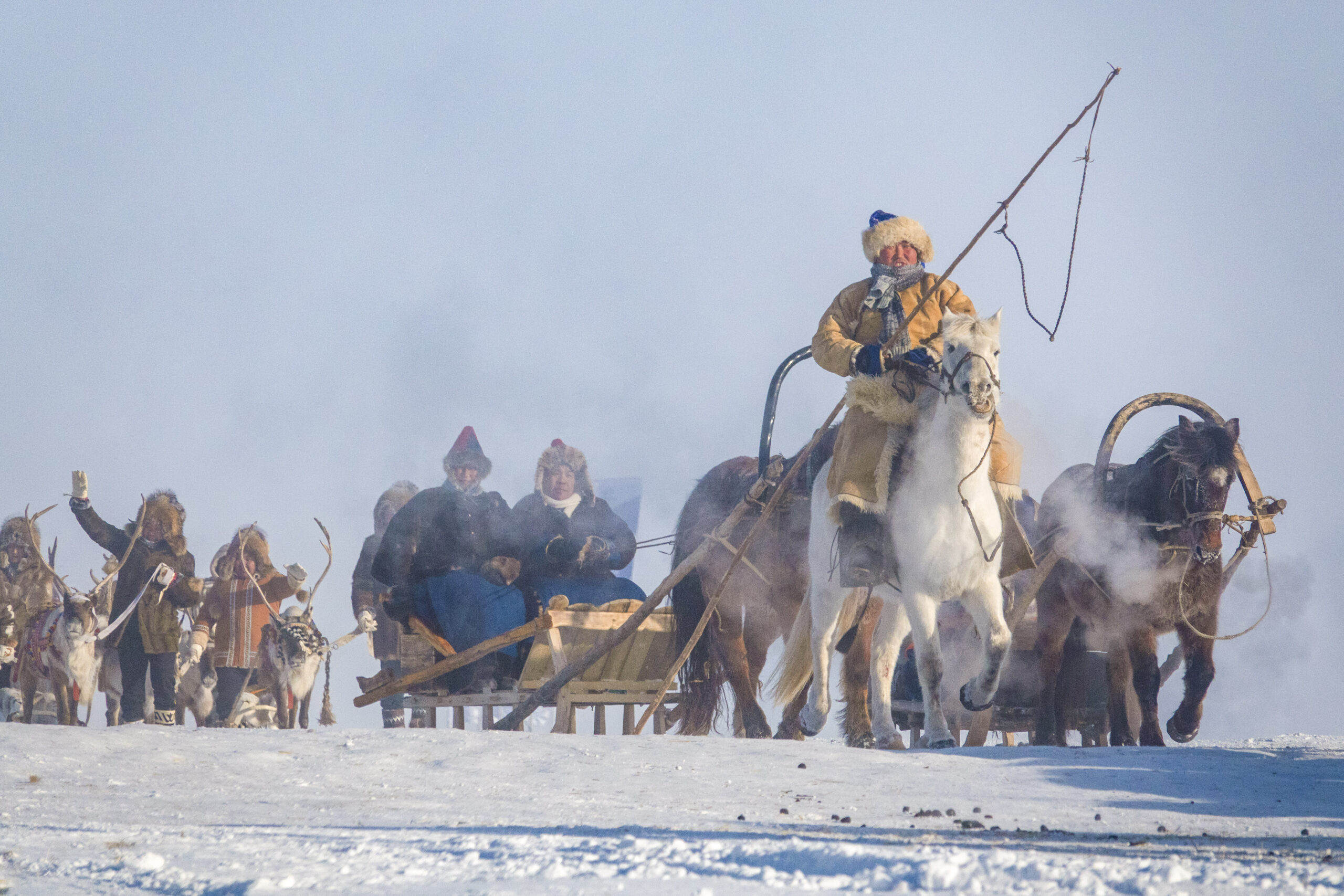 12月17日,牧民驾马车参加冰雪那达慕开幕式。当日,内蒙古自治区第二十届冰雪那达慕在呼伦贝尔市陈巴尔...