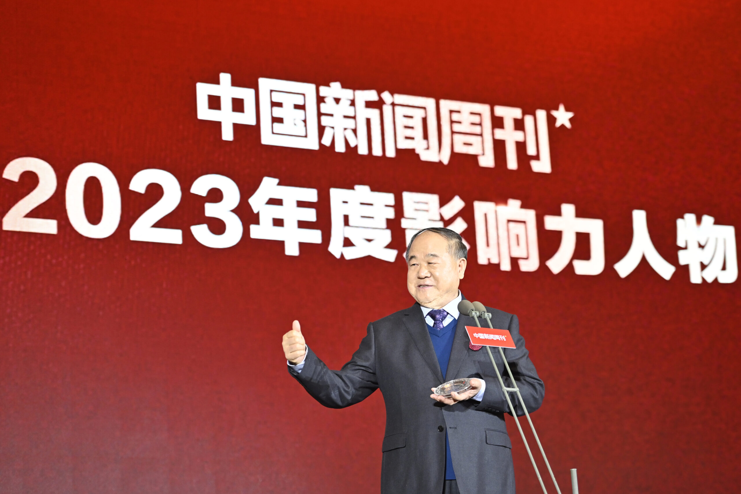 12月15日,《中国新闻周刊》2023年度影响力人物在北京揭晓。中国作协副主席、诺贝尔文学奖获得者莫...