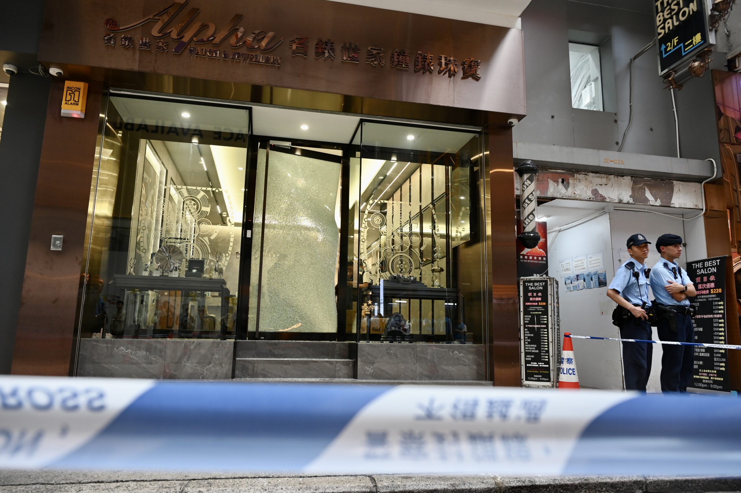 12月12日下午,位于香港尖沙咀加连威老道一钟表店遇劫,损失名表价值逾千万港元,疑犯逃离而去。现场可...