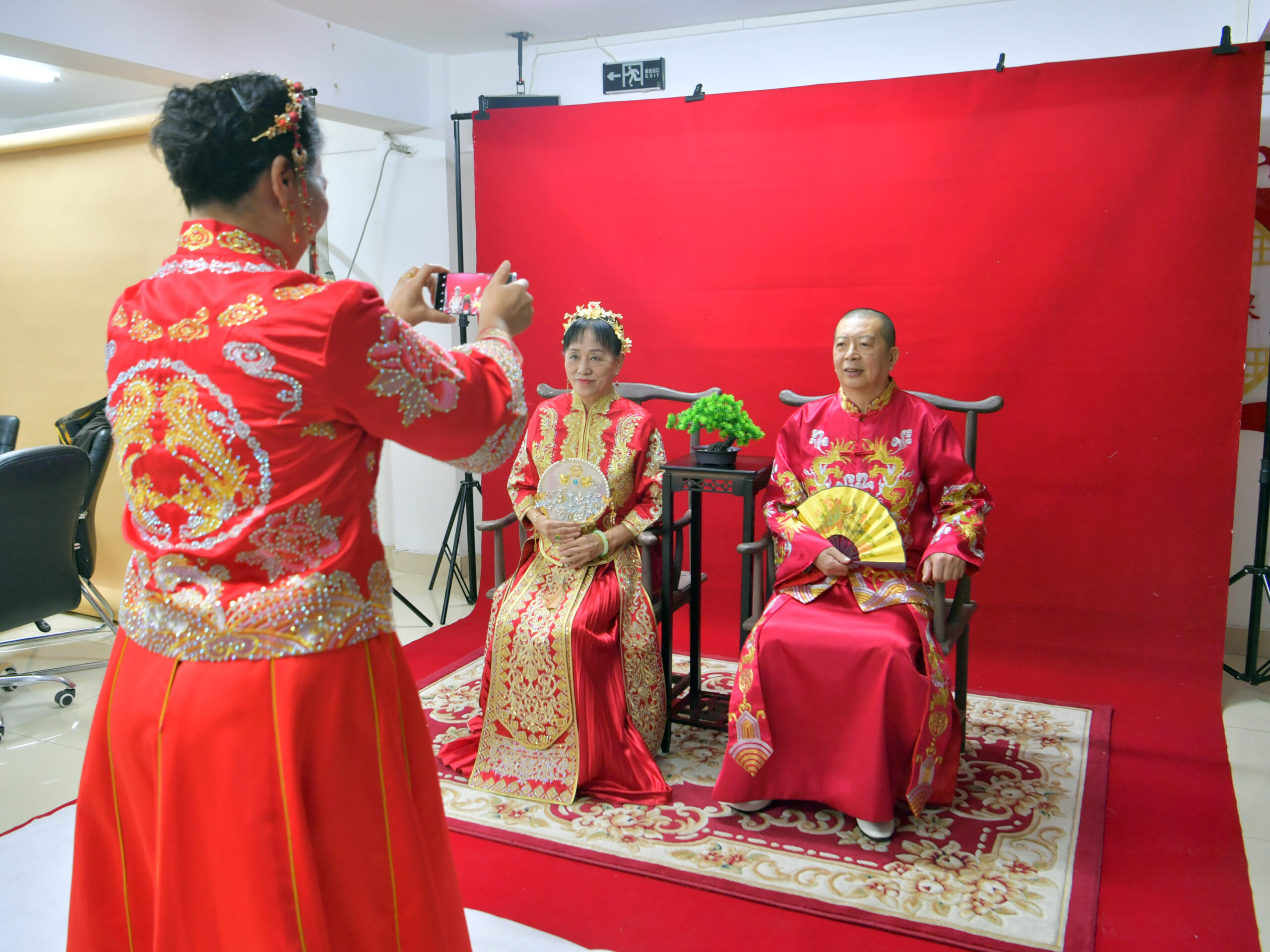 12月5日,吉林长春一小区物业公司为小区内的老人们免费补拍婚纱照,用光影定格老人们的幸福岁月。图为老...