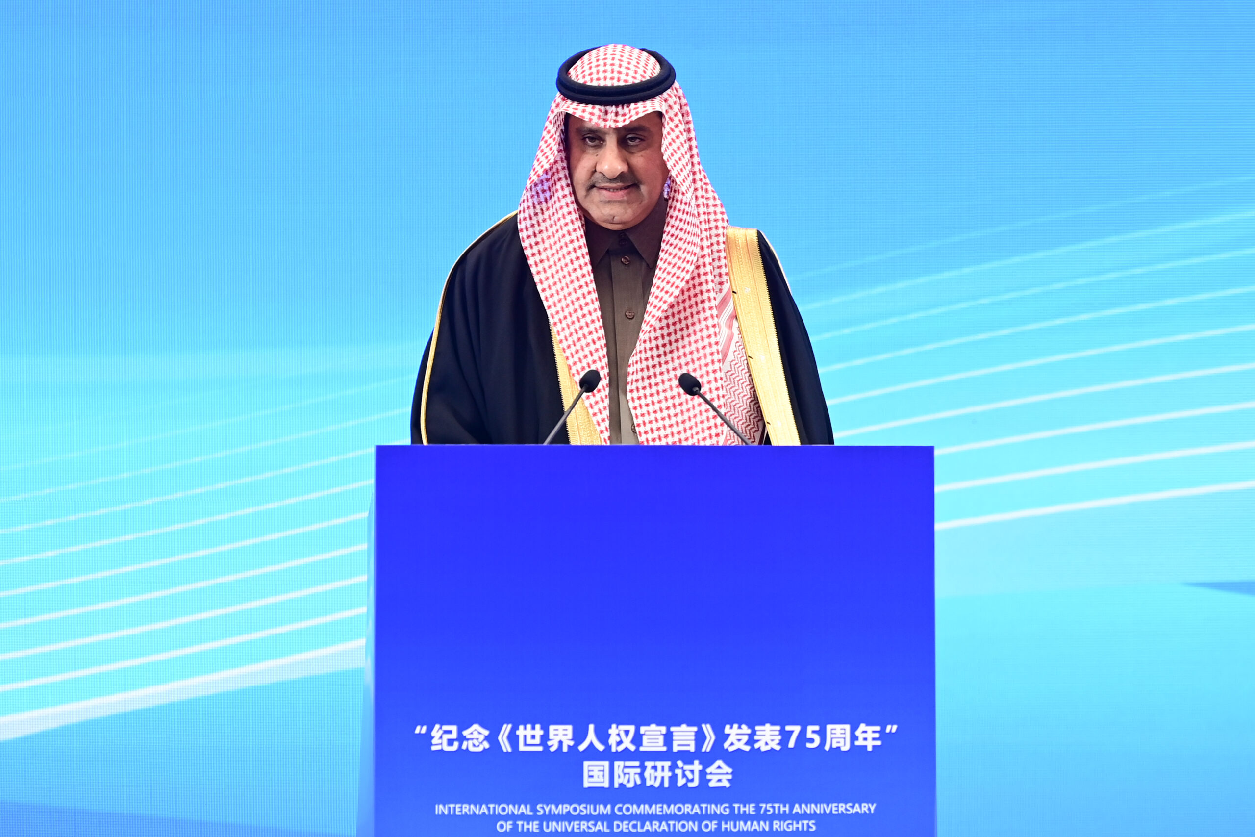 12月5日,“纪念《世界人权宣言》发表75周年”国际研讨会在北京举行。图为沙特人权委员会副主席希沙姆...