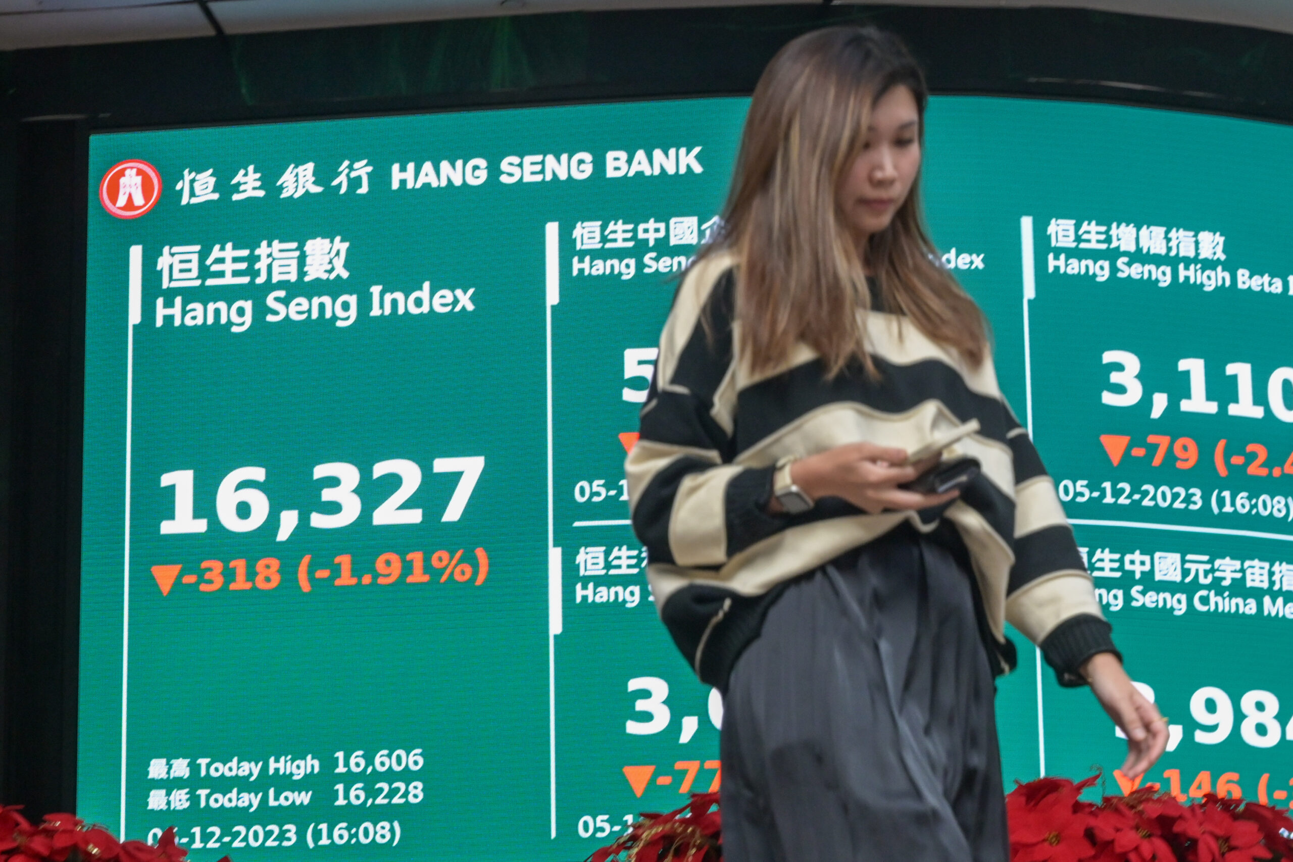 12月5日,香港恒生指数收市报16327.86点,下跌318.19点,跌幅为1.91%,全日成交金额...