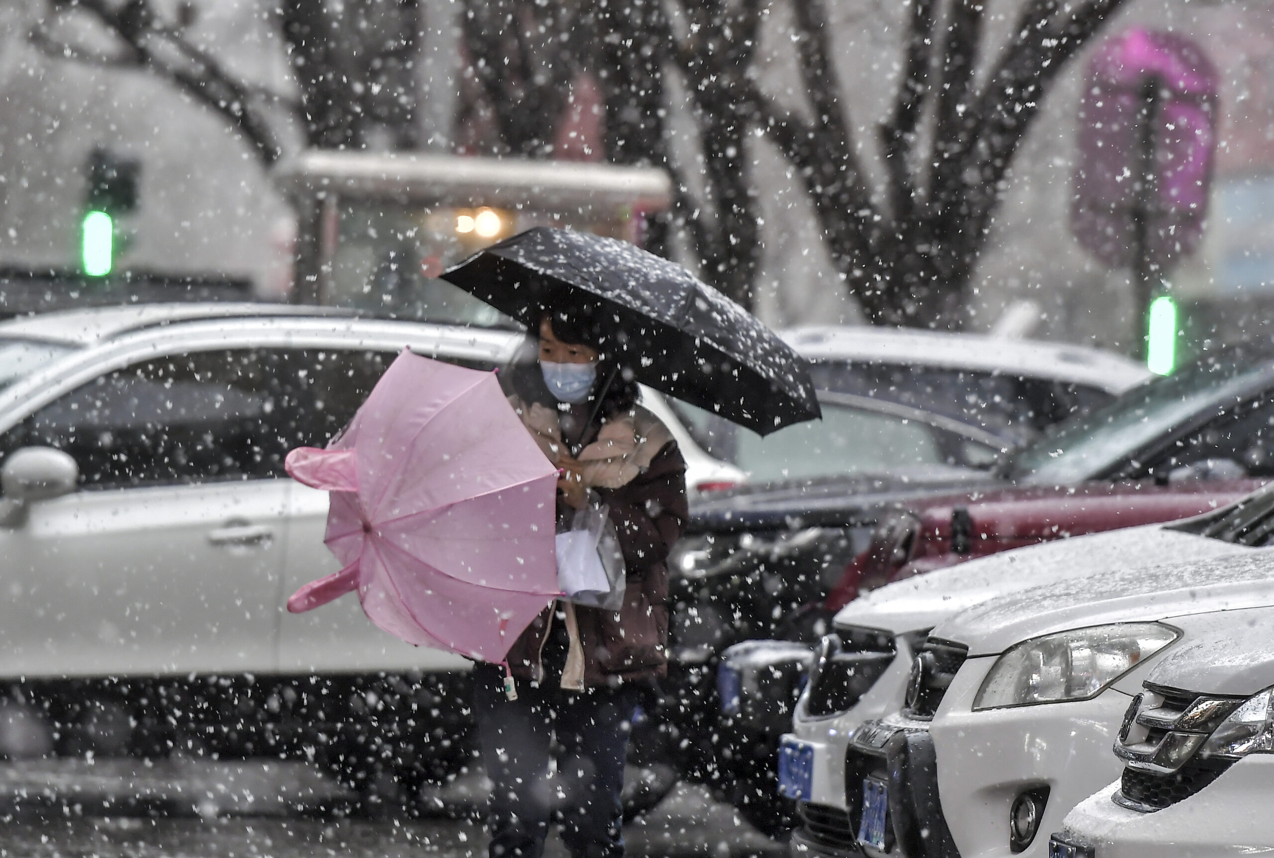 12月4日,受北方较强冷空气影响,新疆乌鲁木齐市迎来降雪天气。图为市民冒雪出行。 未经允许不得转载:...