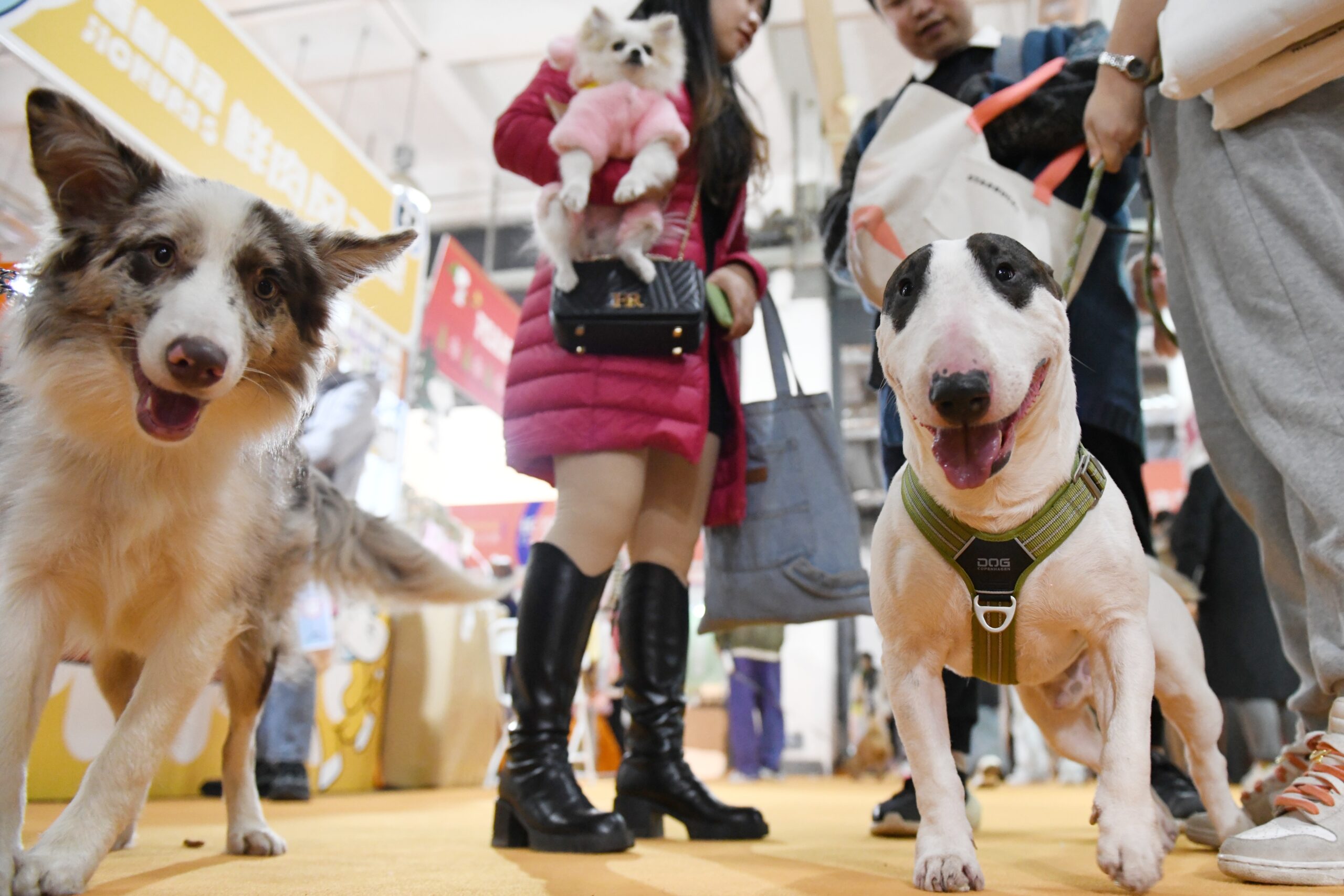 12月2日,民众带着宠物狗逛展。当日,在湖南长沙举办的CPS·2023长沙宠物及水族产业博览会吸引众...
