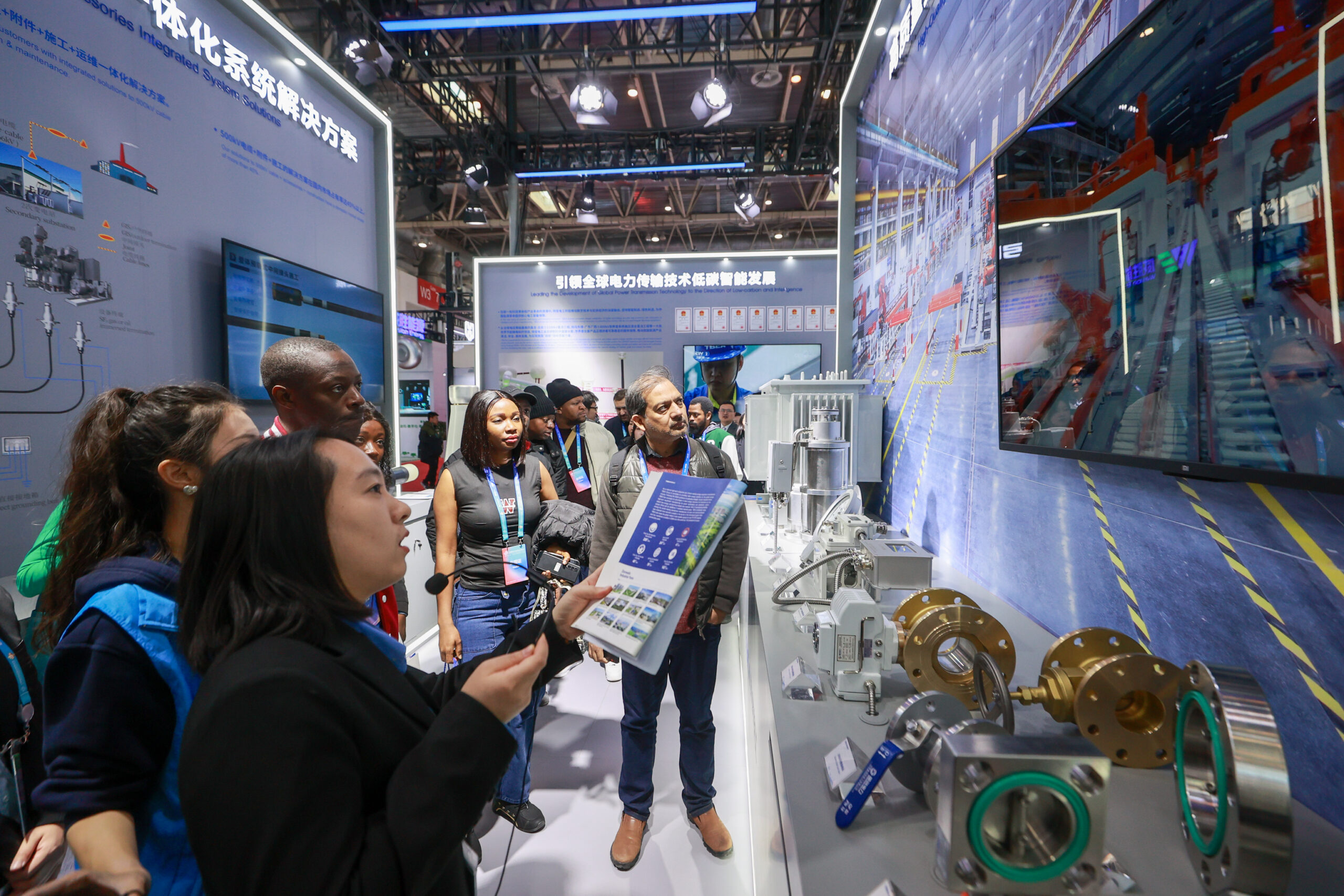 12月2日,北京,外国观众在中国国际供应链促进博览会上参观。当日,首届链博会闭幕。据不完全统计,本届...