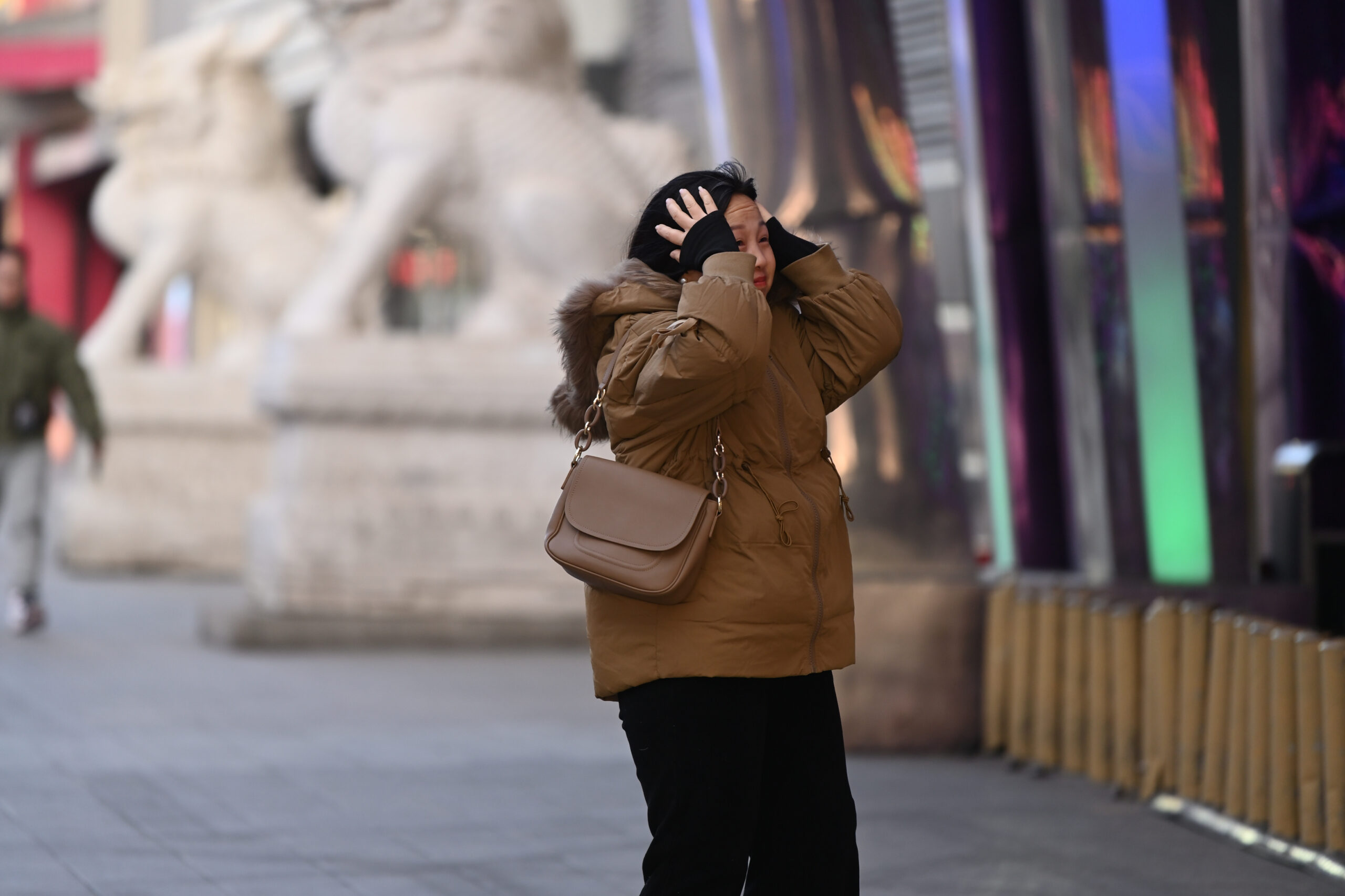11月22日,内蒙古呼和浩特迎大风降温天气,市民在大风中出行。 未经允许不得转载:城市新闻网icit...