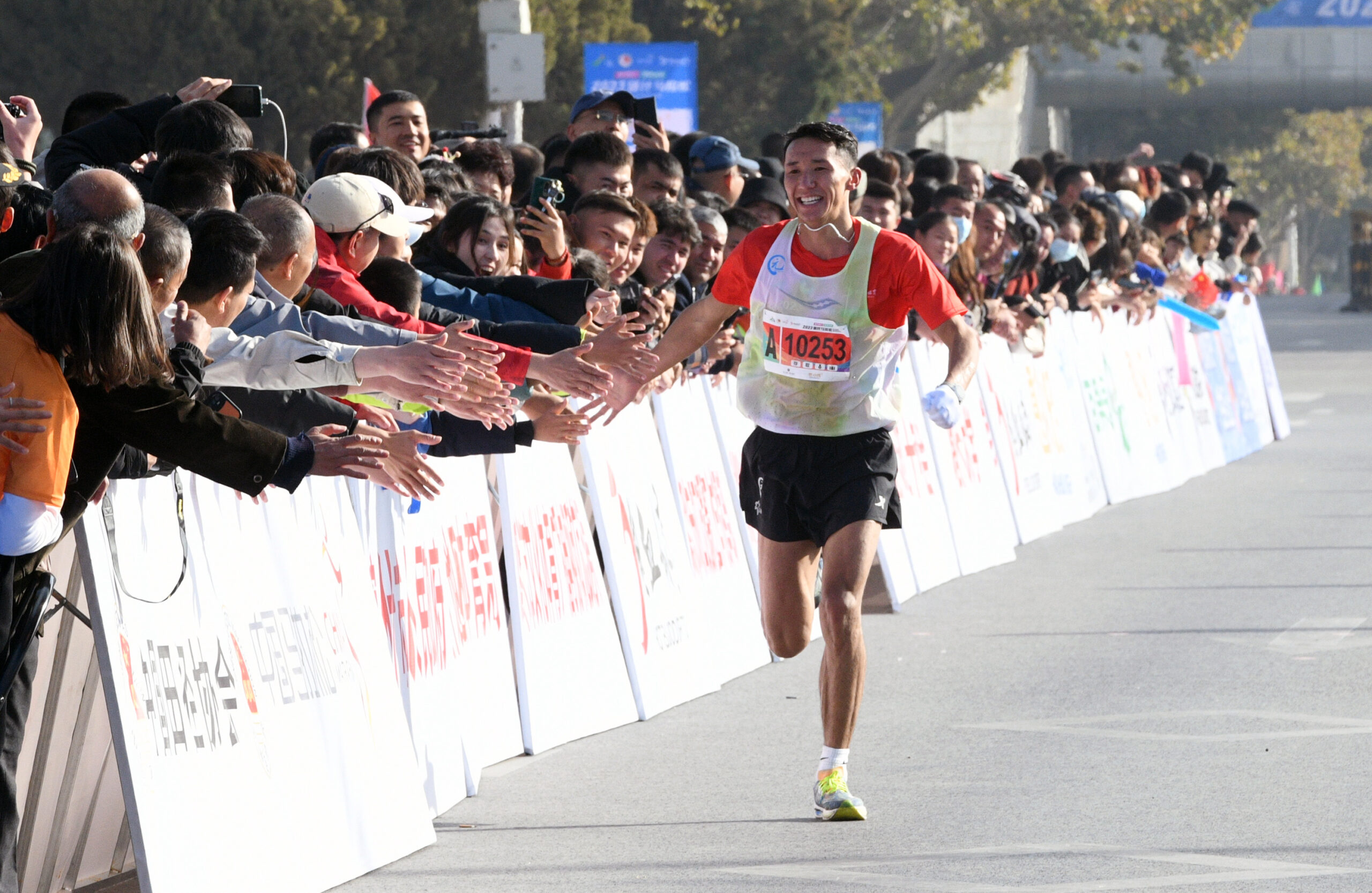 11月12日,新疆喀什市,2023喀什马拉松开跑,国内外9000名跑友体验“相约喀什 畅游古城”的魅...