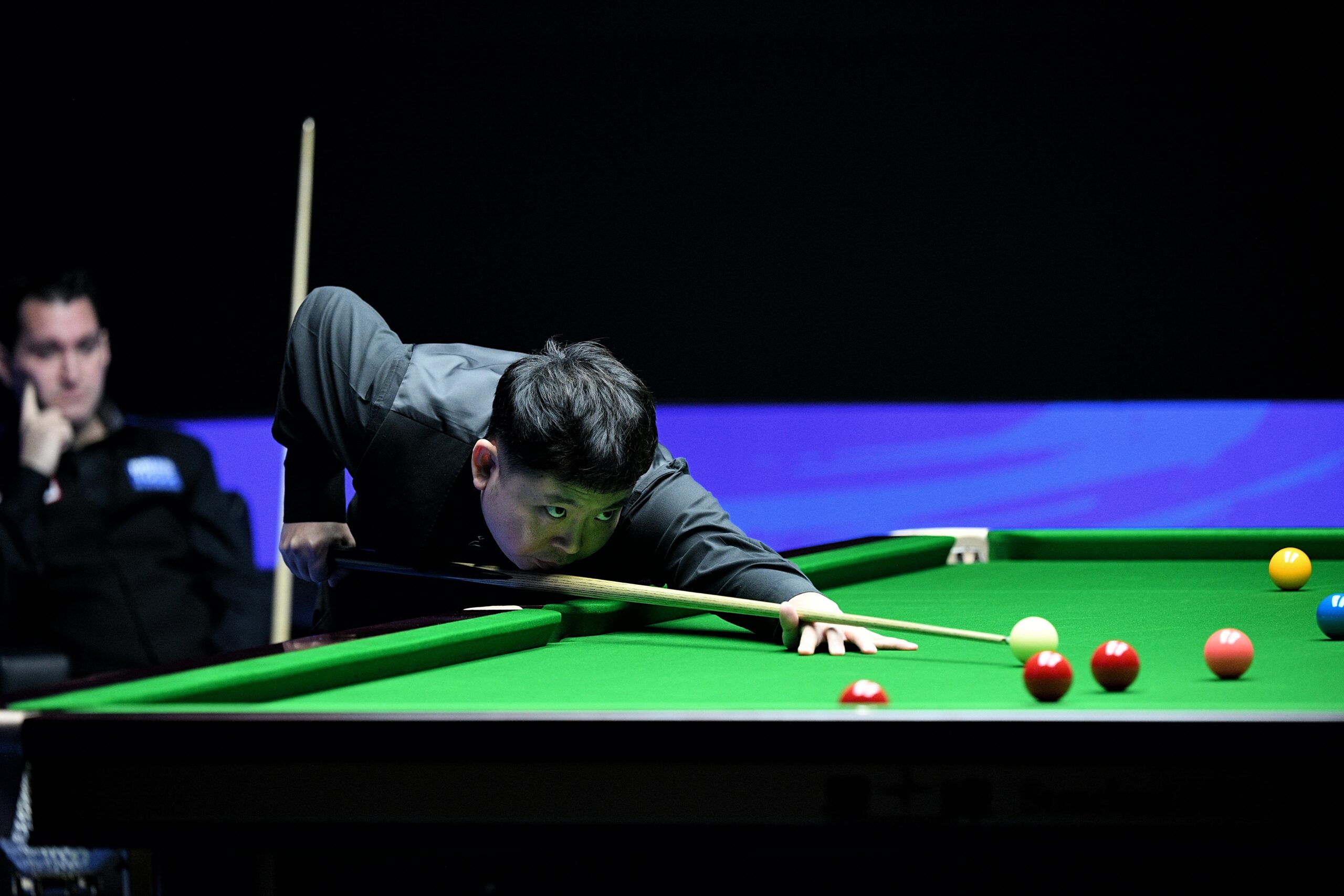 11月12日,中国球员张安达在比赛中。当晚,在天津举行的2023世界斯诺克国际锦标赛决赛中,中国球员...