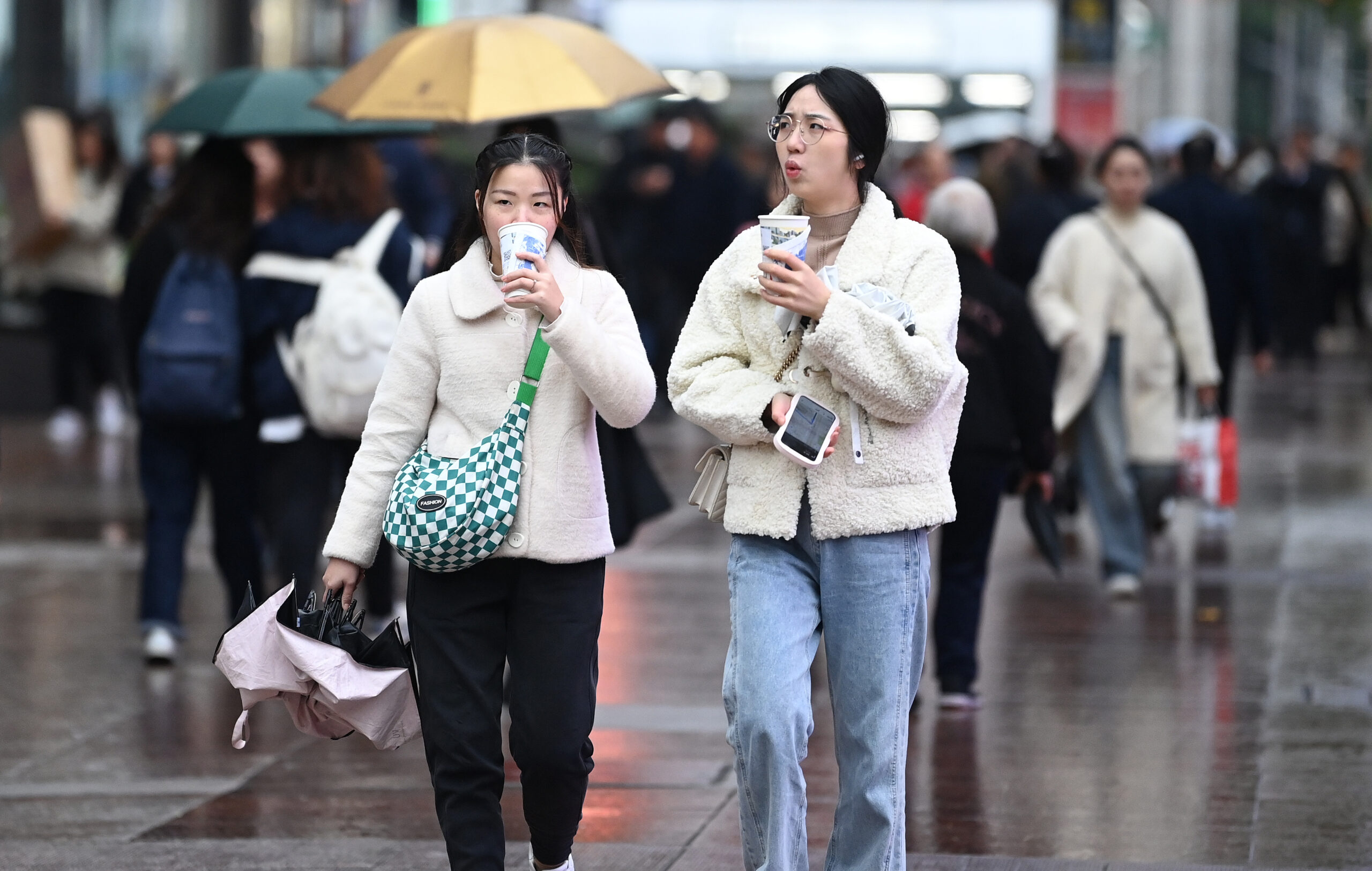 11月13日,重庆街头,市民身着厚装出行。当日,重庆迎来降雨降温天气。 未经允许不得转载:城市新闻网...