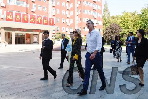 10月27日,正在北京访问的美国加利福尼亚州州长加文·纽森同夫人詹妮弗·纽森参访北京育英学校。 未经...