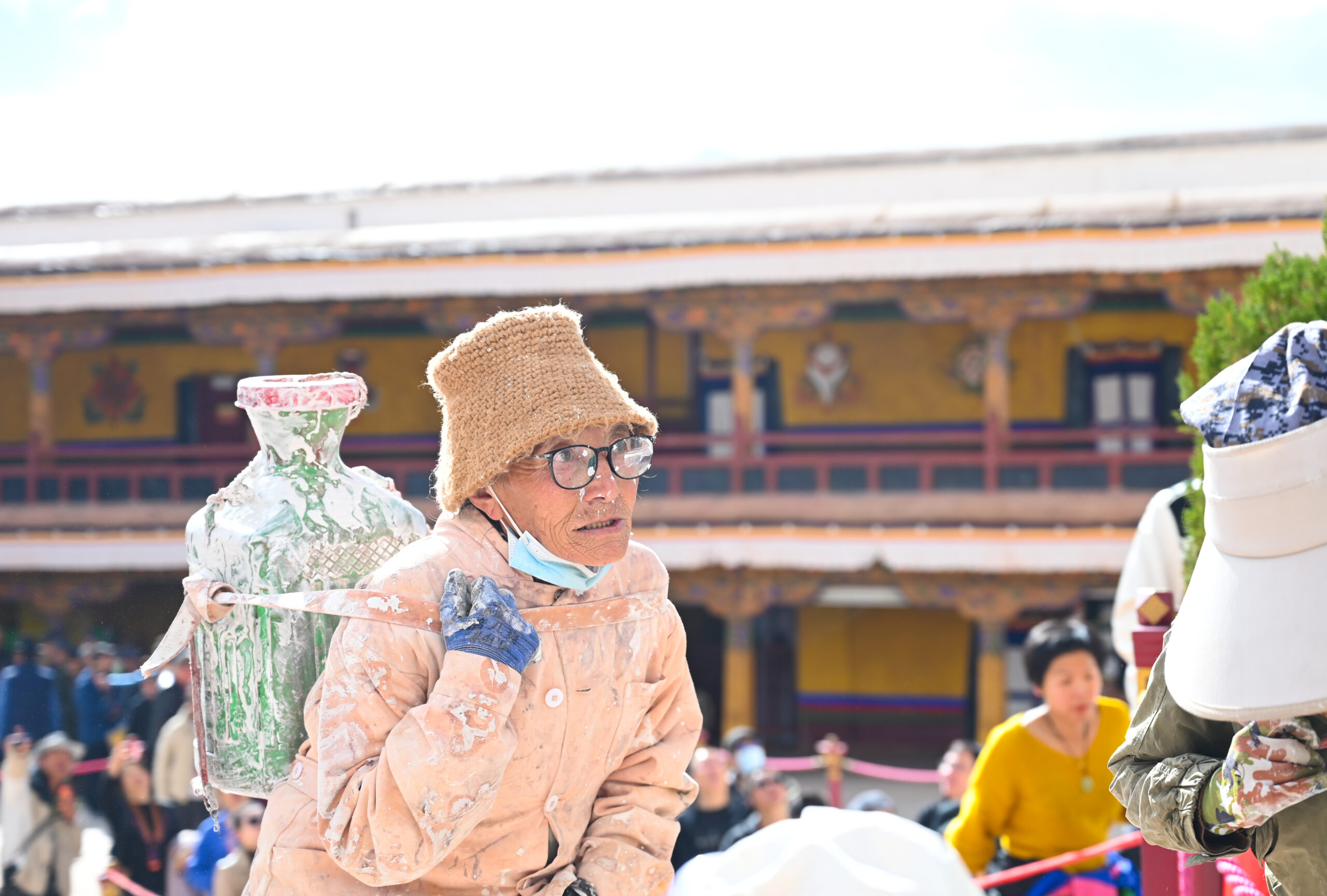 10月18日,西藏布达拉宫迎来新一季粉刷,按照惯例,每季粉刷将在藏历9月22日“神降节”前完成。图为...