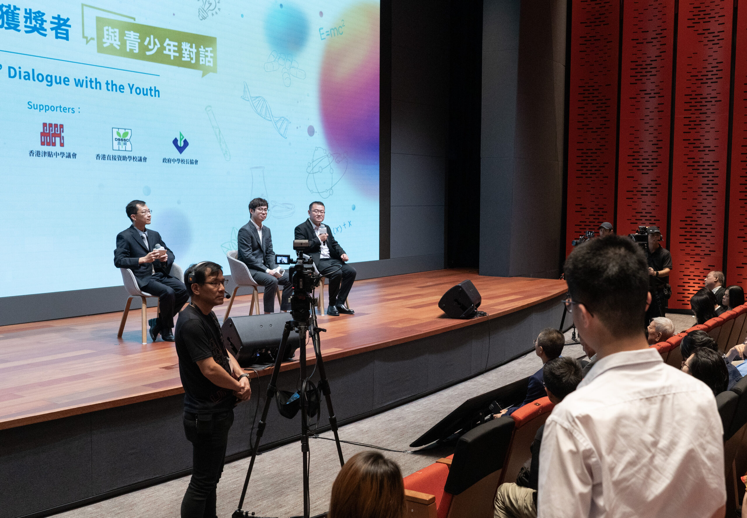 10月17日,获得2023未来科学大奖的科学家柴继杰、周俭民、赵忠贤、陈仙辉、任少卿、张祥雨在香港故...