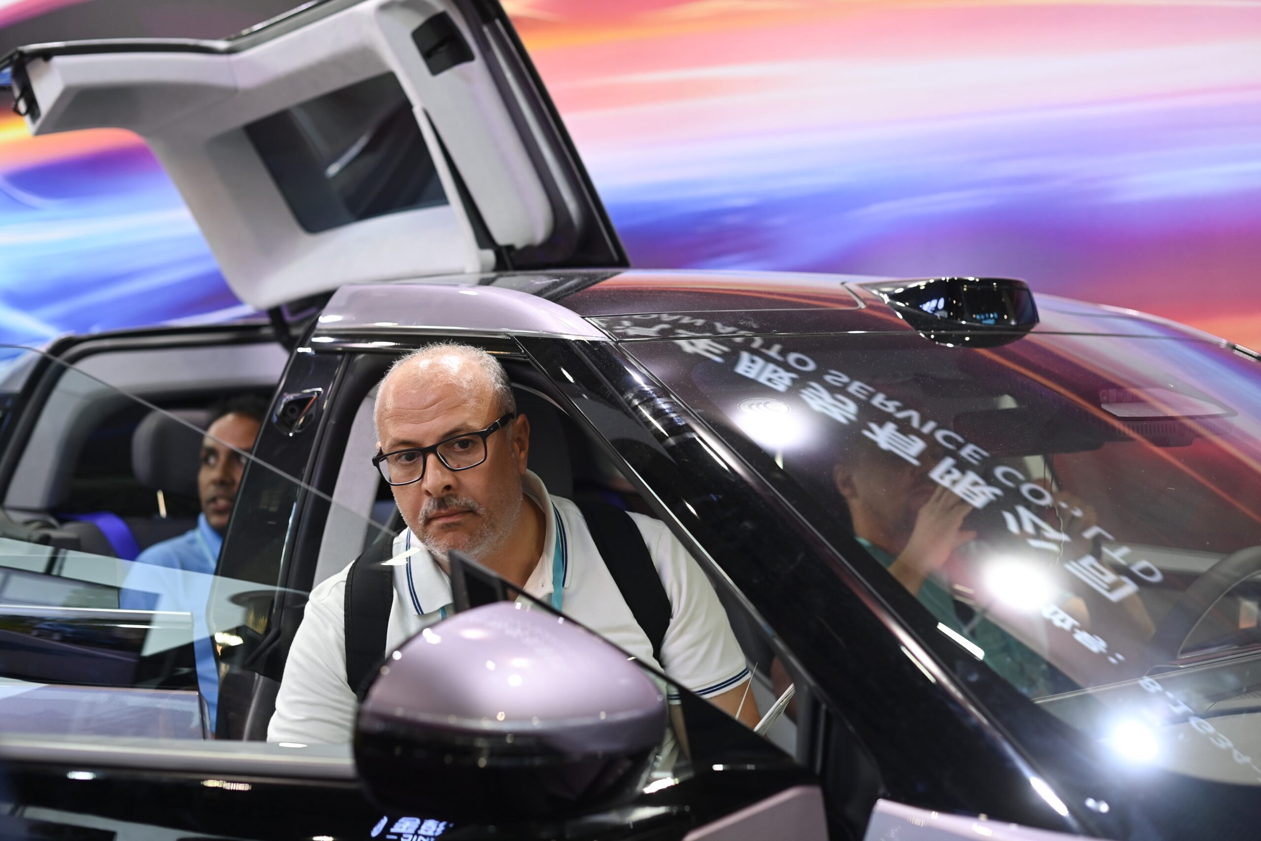 10月16日,广东广州,广交会展馆A区的新能源汽车吸引境外采购商参观体验。 未经允许不得转载:城市新...