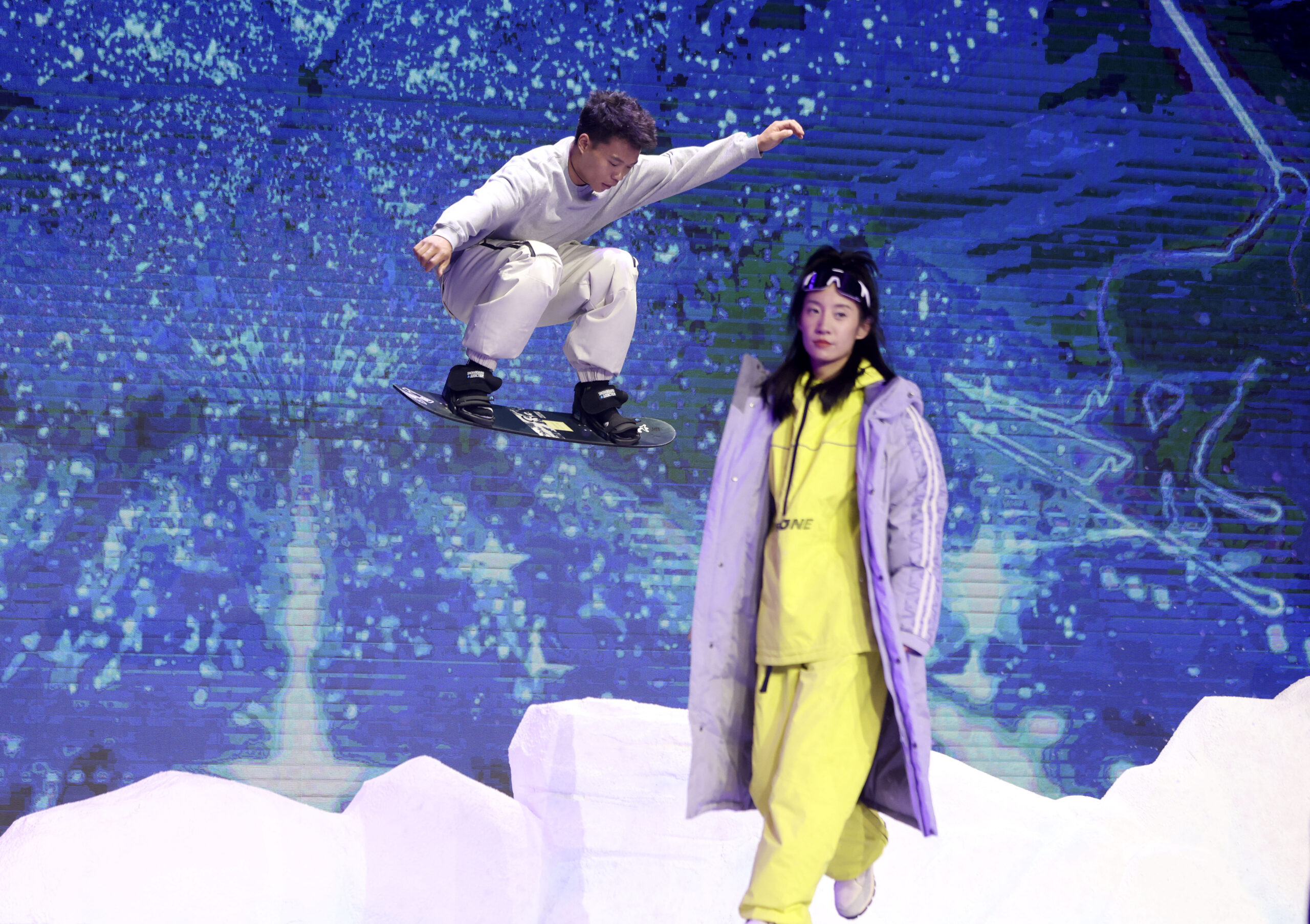 10月10日,雪中飞首届“为雪而生·123大众冰雪节”公益活动在北京启动。图为年轻人沉浸式展现冰雪运...
