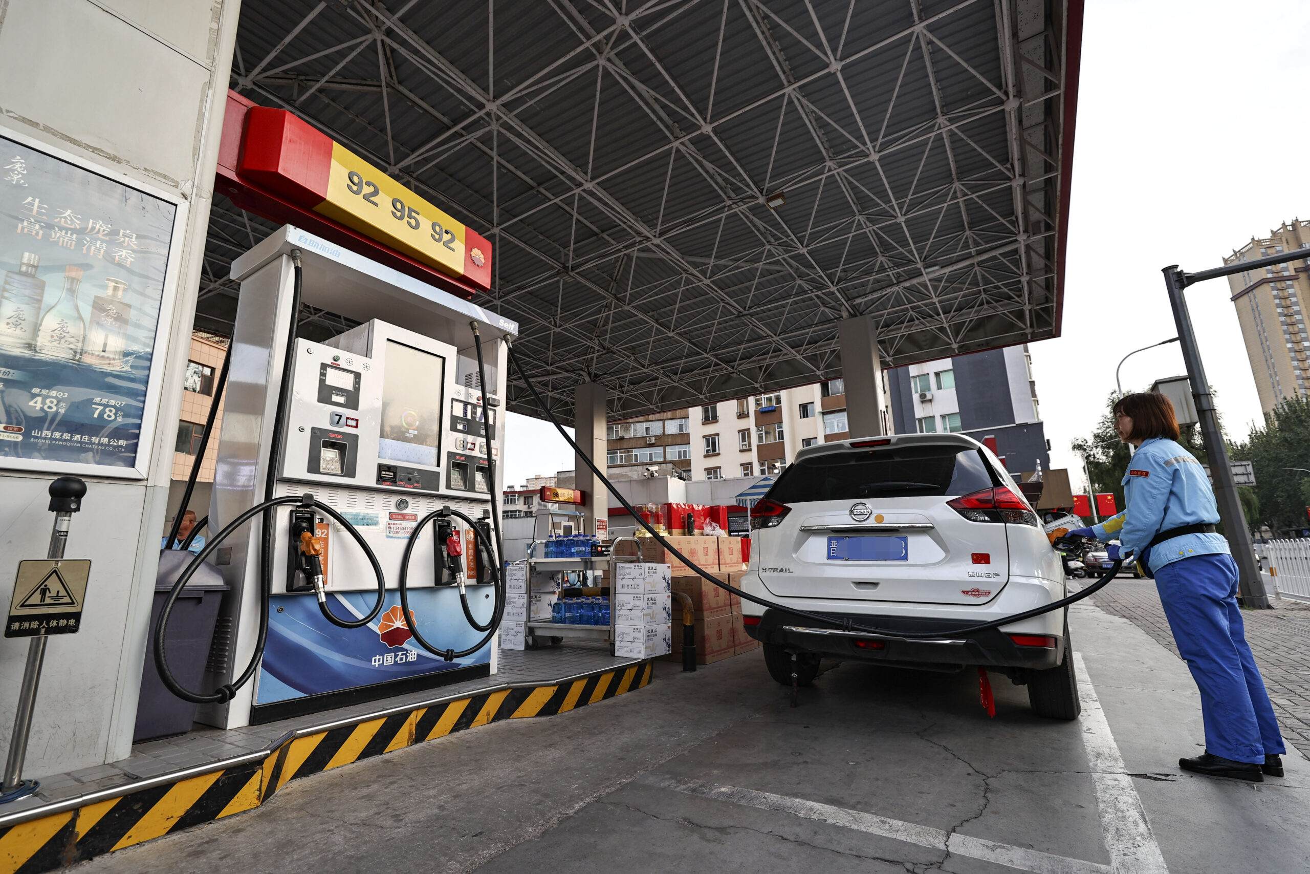 10月10日,山西太原,车辆在加油站加油。当日,中国国家发改委发布消息称,根据近期国际市场油价变化情...