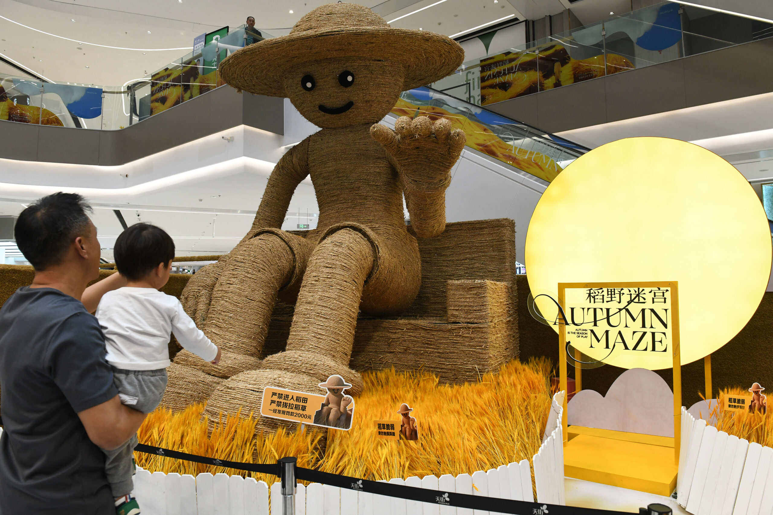 10月8日,商家在重庆一商圈内用稻草搭建的迷宫吸引民众。 未经允许不得转载:城市新闻网icityne...