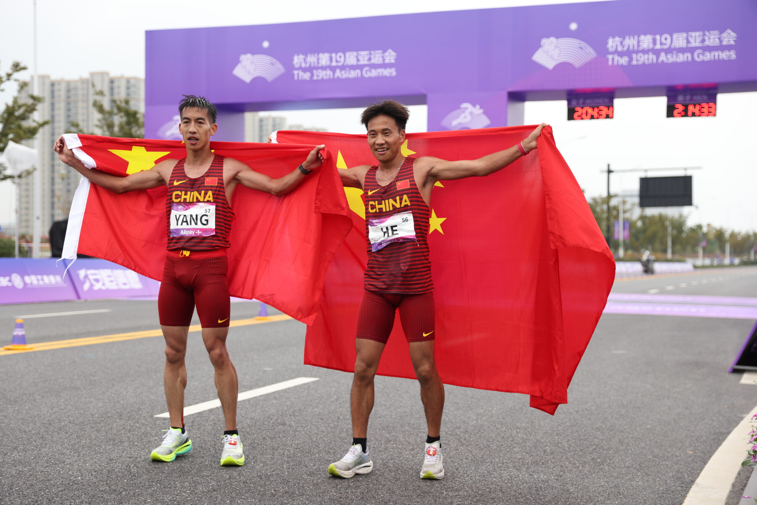 10月5日,杭州第19届亚运会男子马拉松比赛在杭州智慧新天地沿江景观带举行,中国选手何杰获得以2小时...