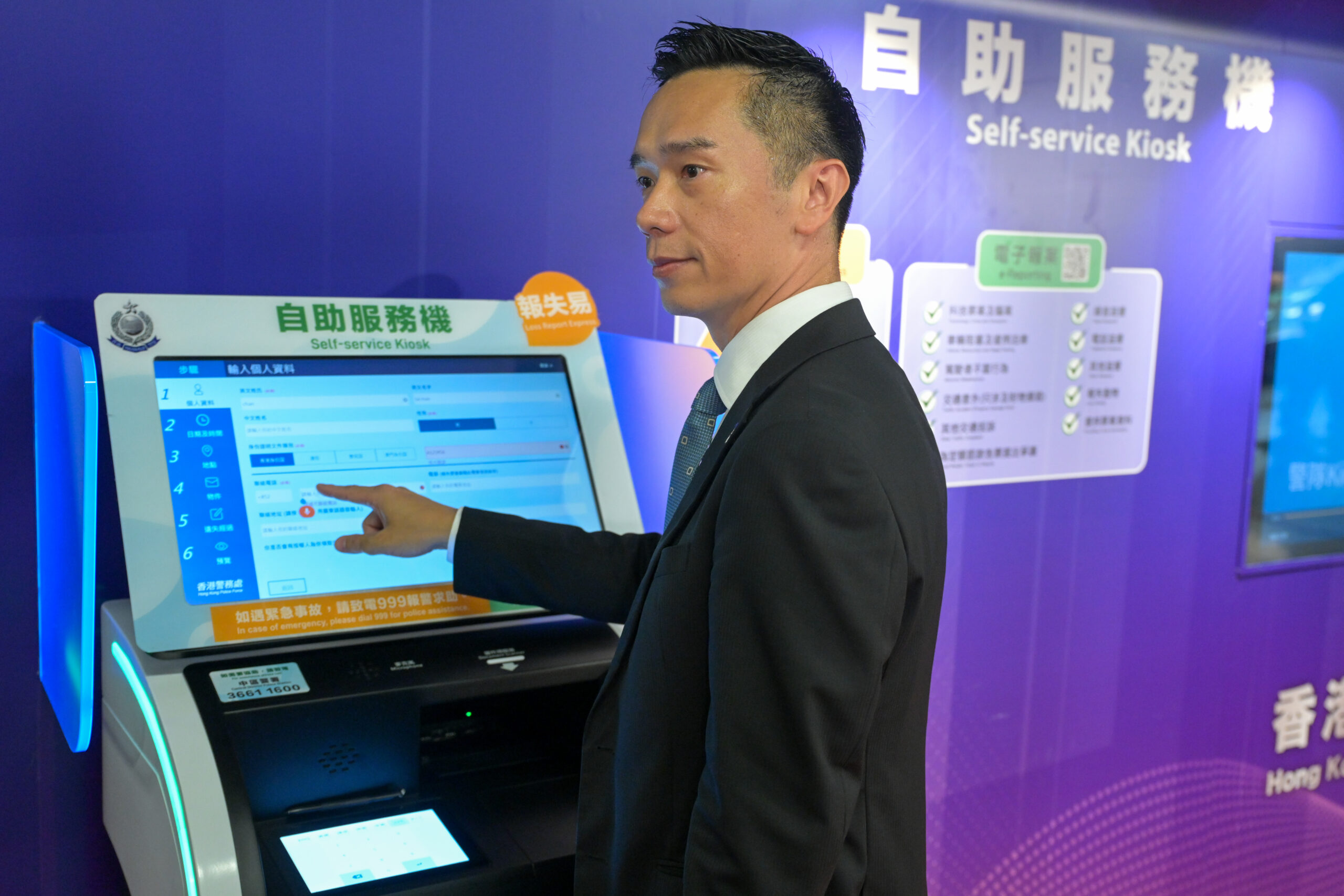 10月5日,香港警务处在金钟设立首个港铁站自助服务机,并举行启动仪式。自助服务机旨在提供便捷的方法,...